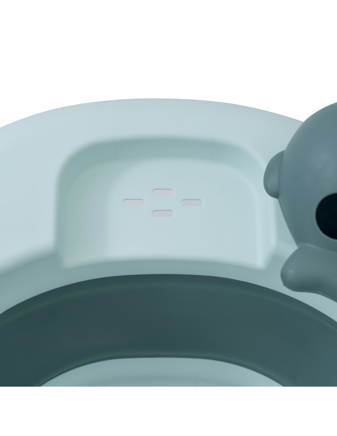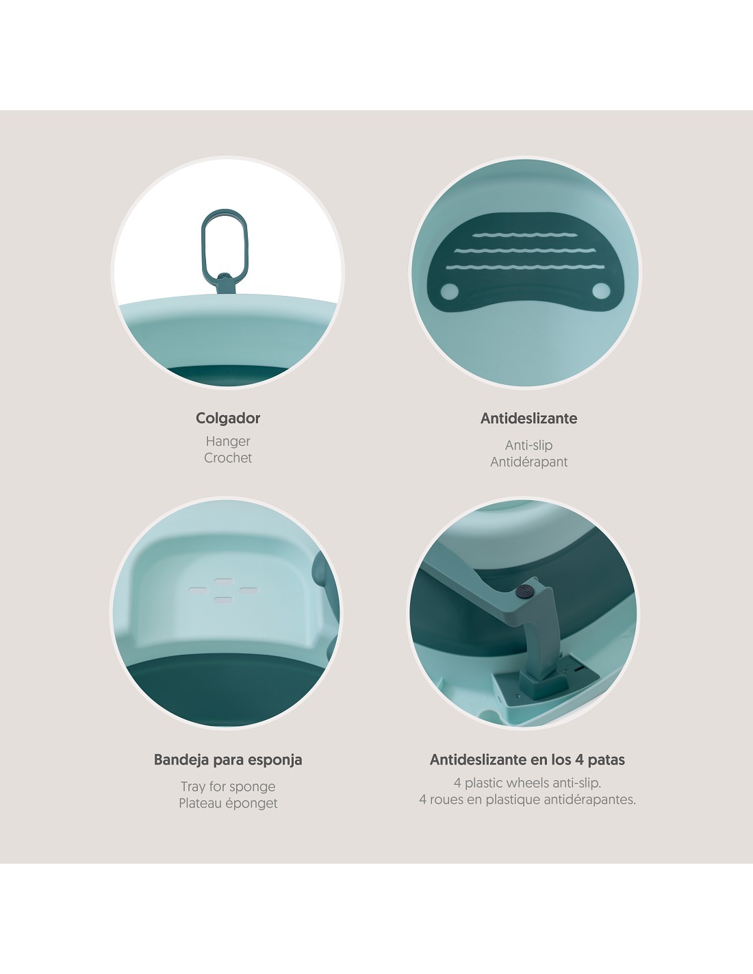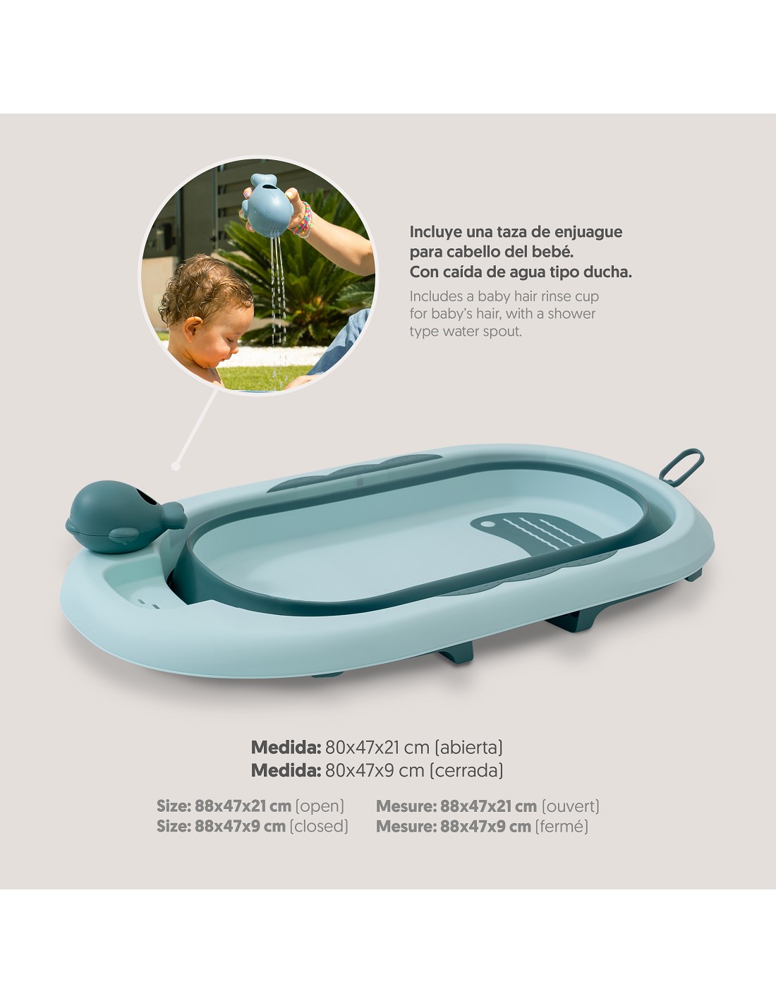 Bañera plegable antideslizante. 4 ventosas. taza enjuague. tapón hermético. bandeja para esponja. colgador. uso de 0 a 6 meses