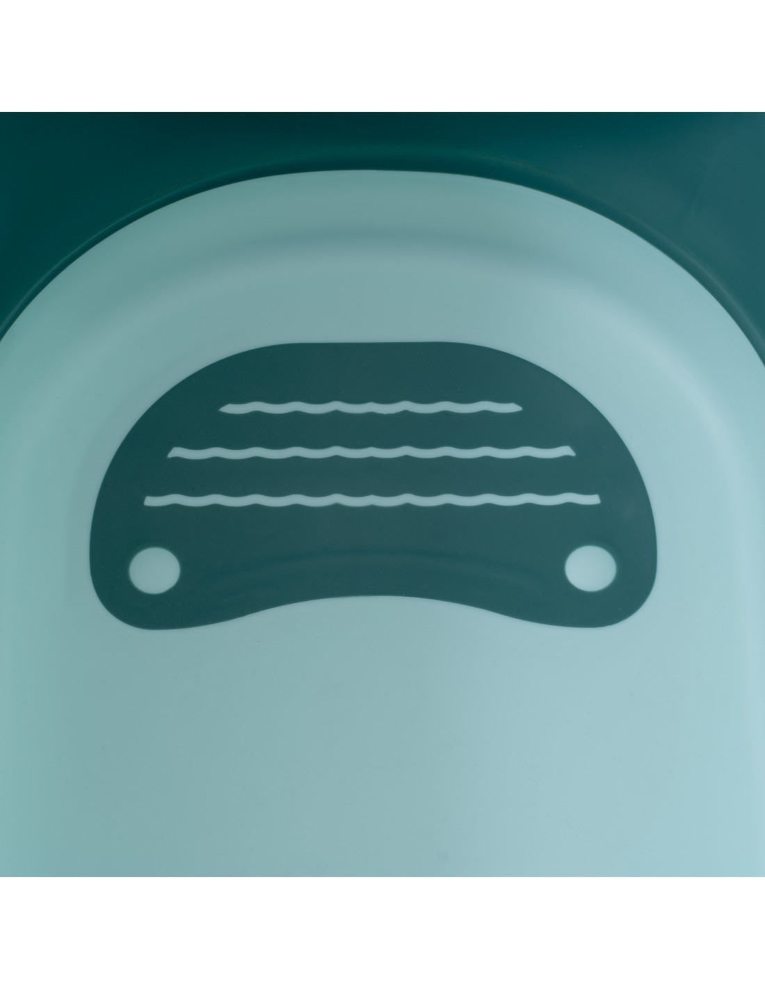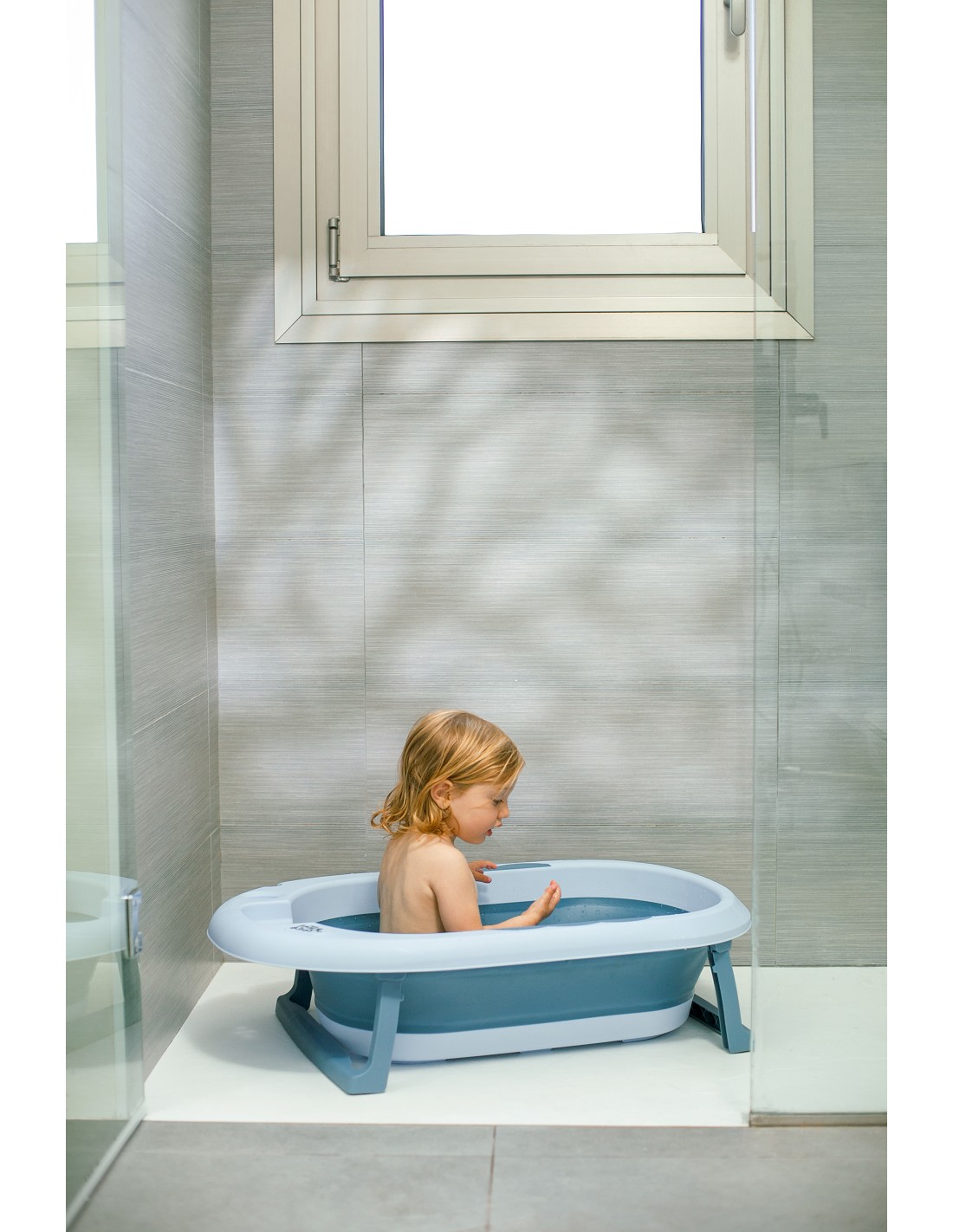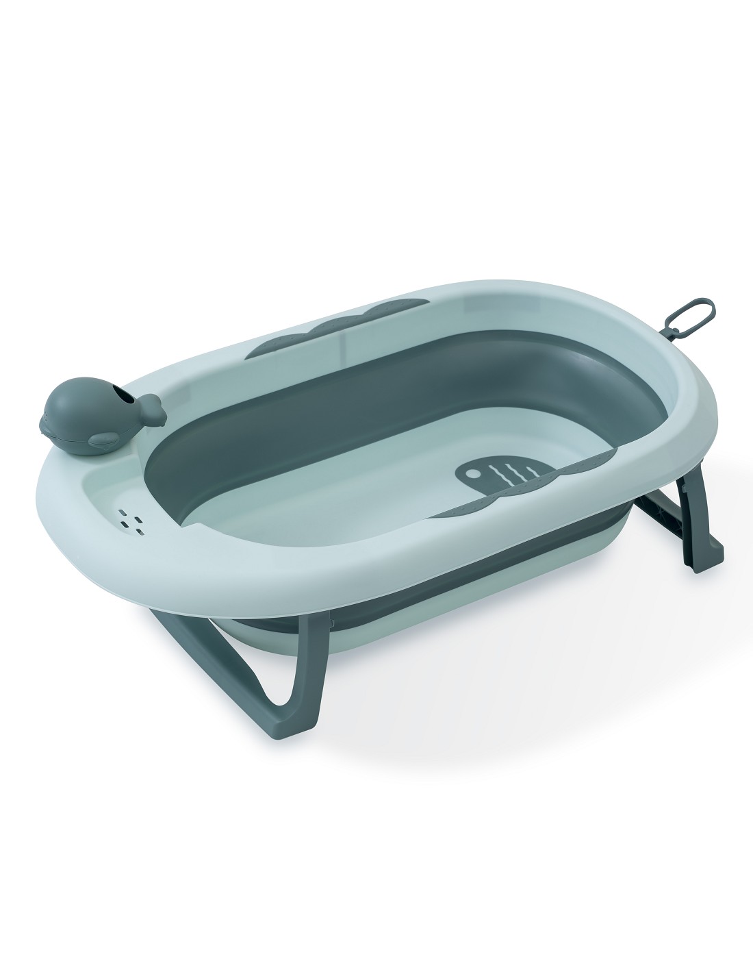 Bañera plegable antideslizante. 4 ventosas. taza enjuague. tapón hermético. bandeja para esponja. colgador. uso de 0 a 6 meses