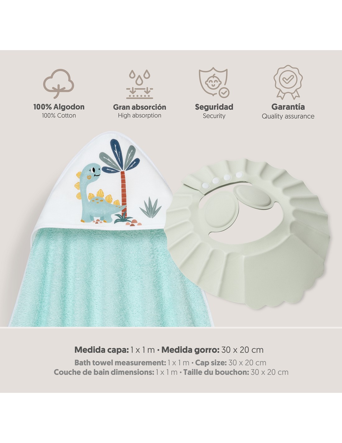 Capa Baño 1X1 Mod Estampado Dinosaurio Palmera+Gorro Verde