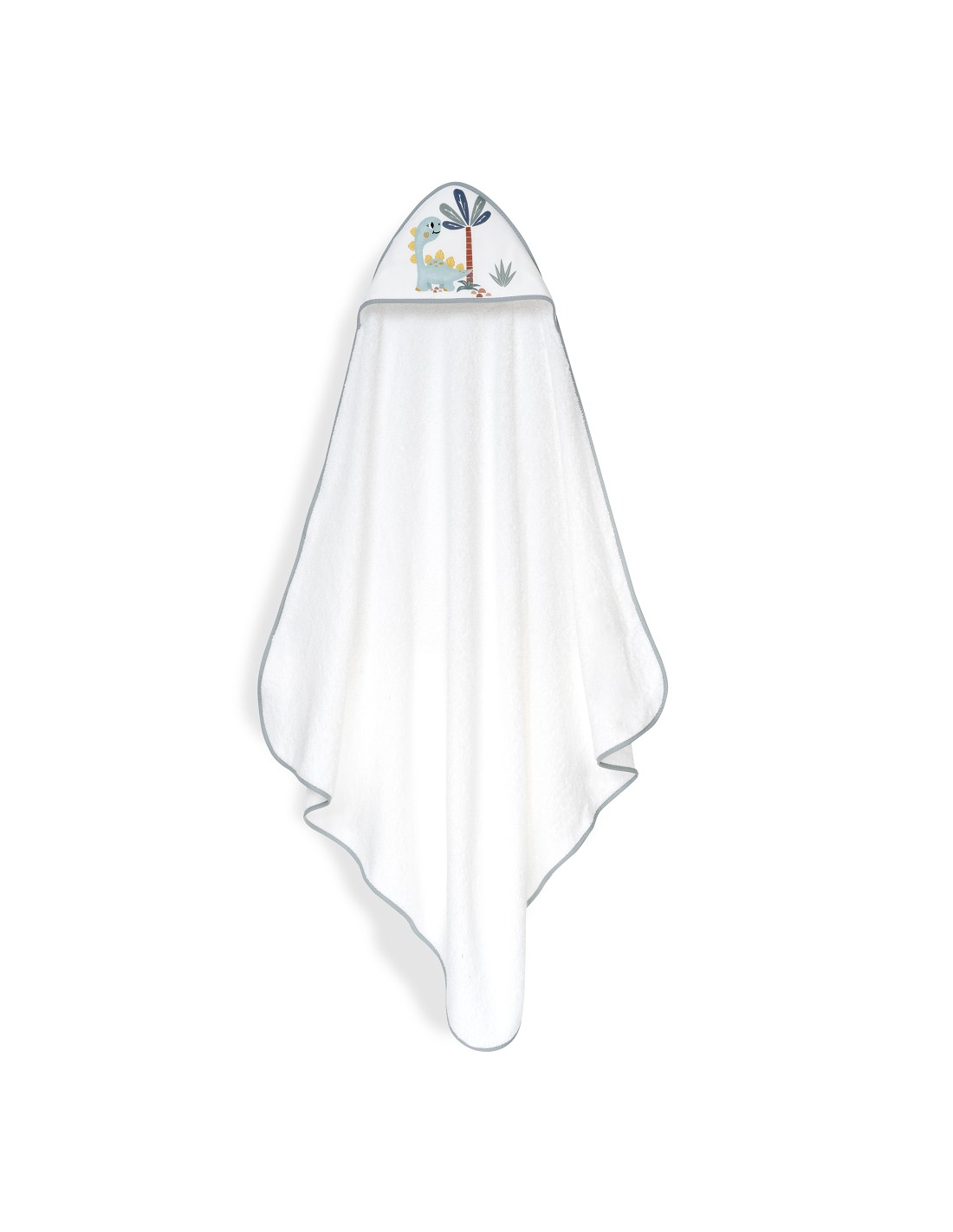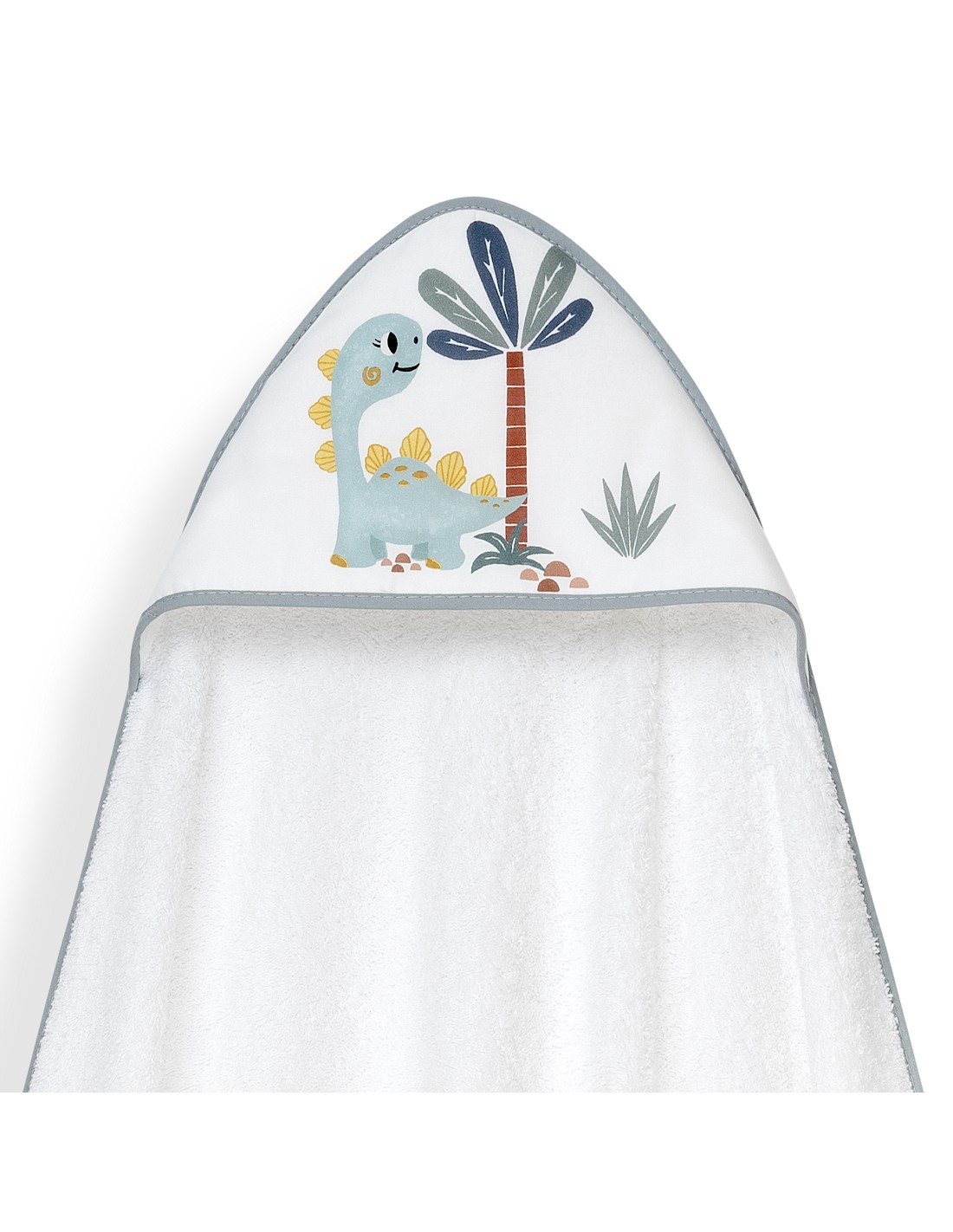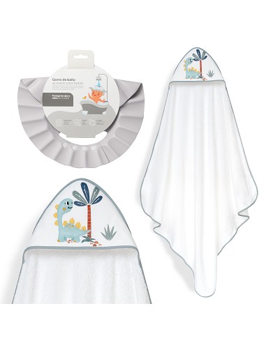 Capa Baño 1X1 Mod Estampado Dinosaurio Palmera+Gorro Bco/Gris