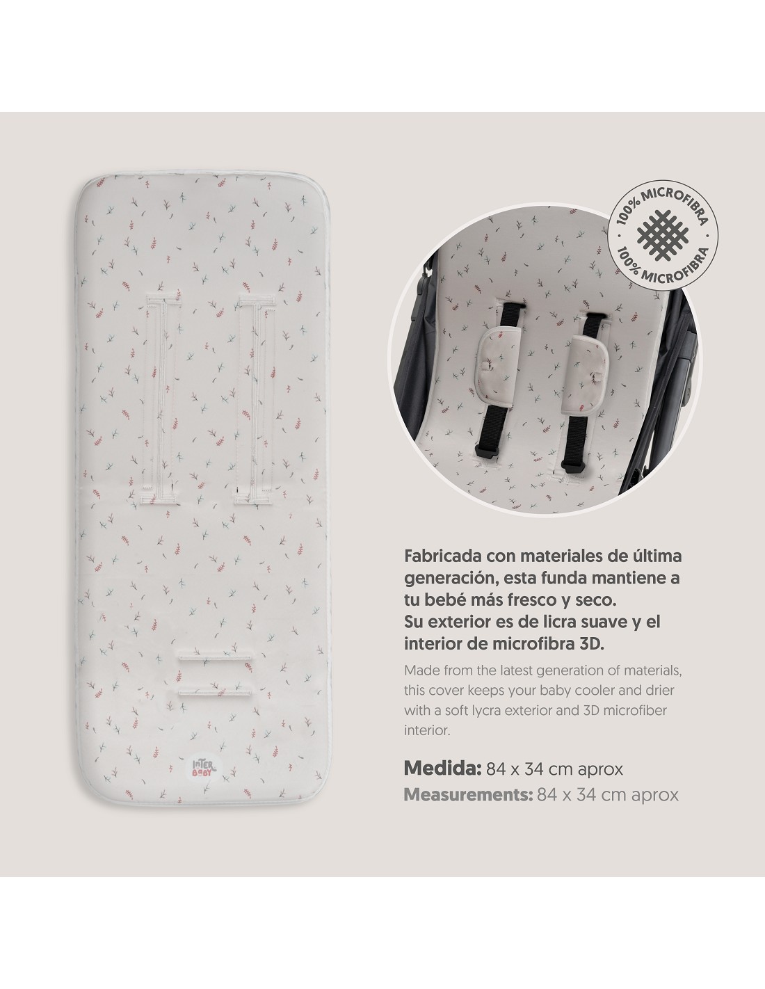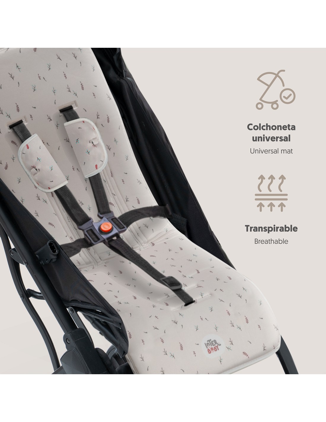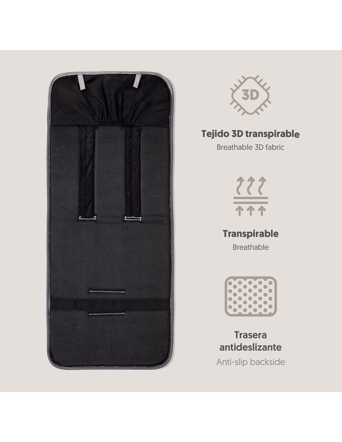 Colchoneta para silla de paseo universal transpirable + protector de cinturón. Tejido 3D transpirable. Fabricado con la última tecnología para mantener fresco y seco a tu bebé. Adaptable a cualquier silla de paseo.