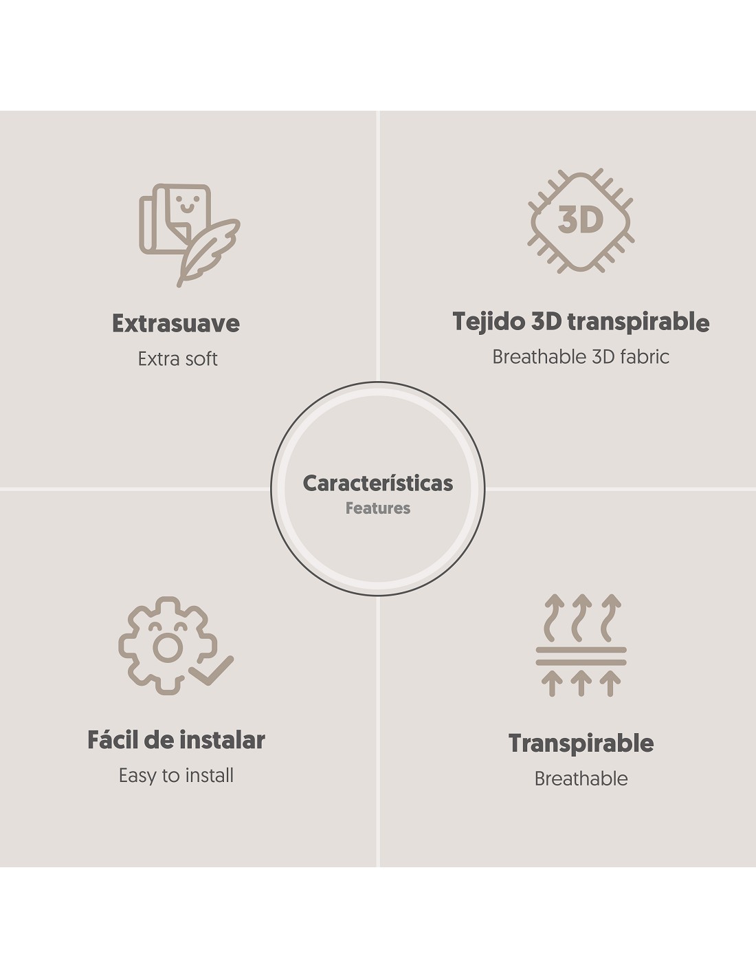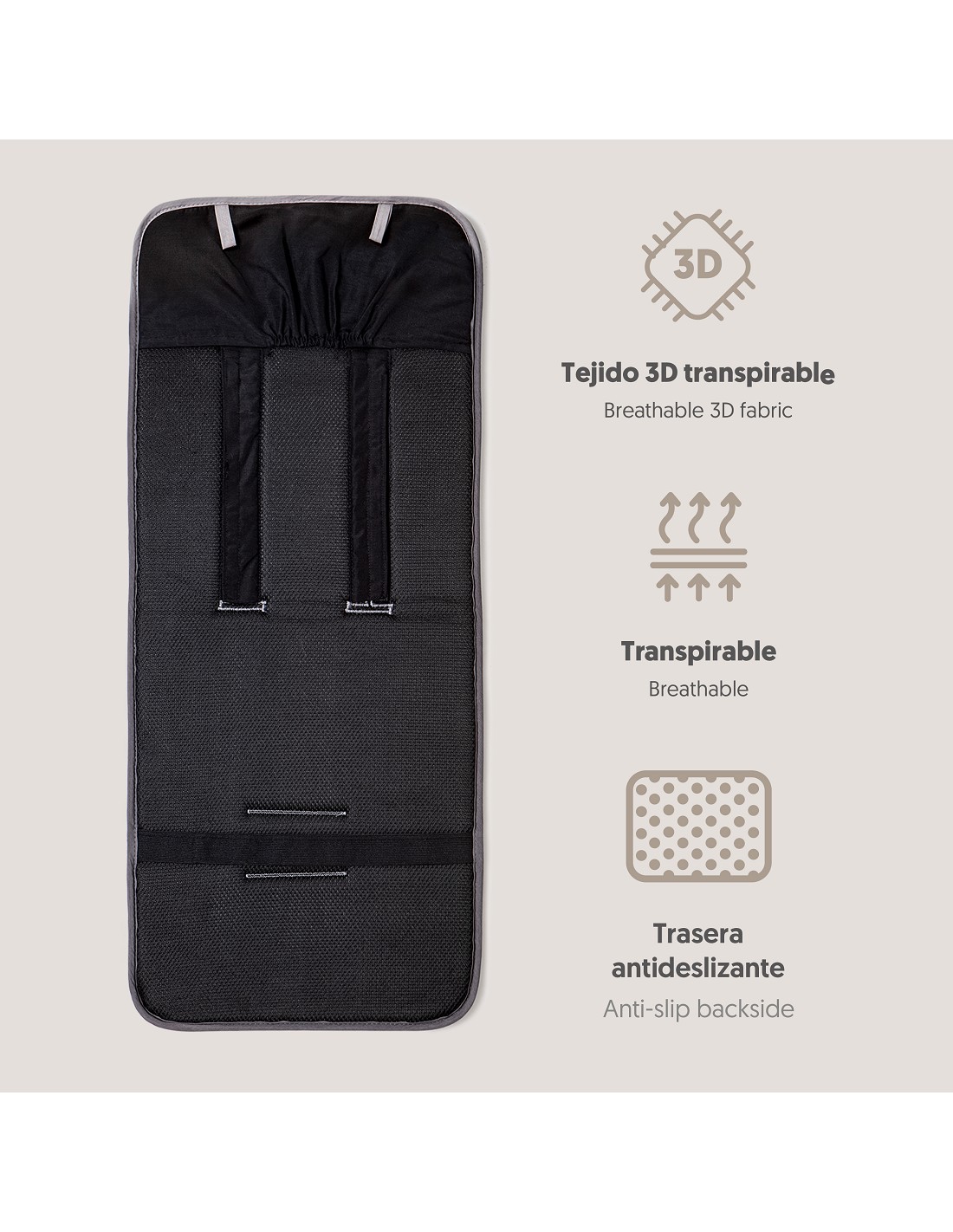 Colchoneta para silla de paseo universal transpirable + protector de cinturón. Tejido 3D transpirable. Fabricado con la última tecnología para mantener fresco y seco a tu bebé. Adaptable a cualquier silla de paseo.