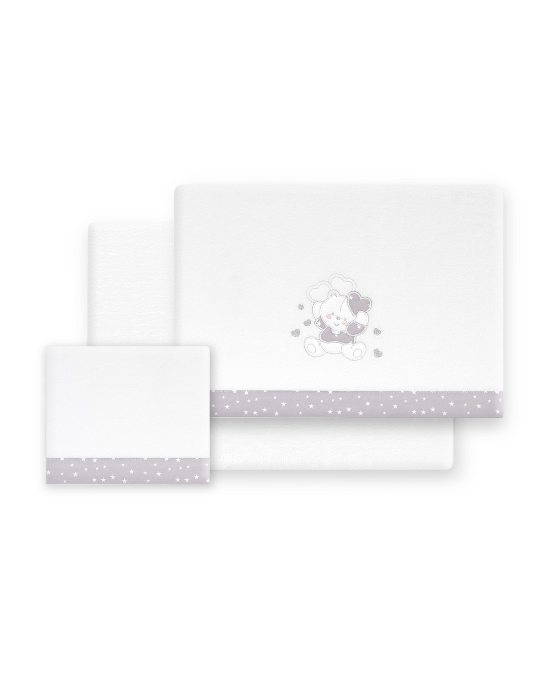 Triptico Cuna Coralina D. Algodon Oso Corazones Bco/Gris