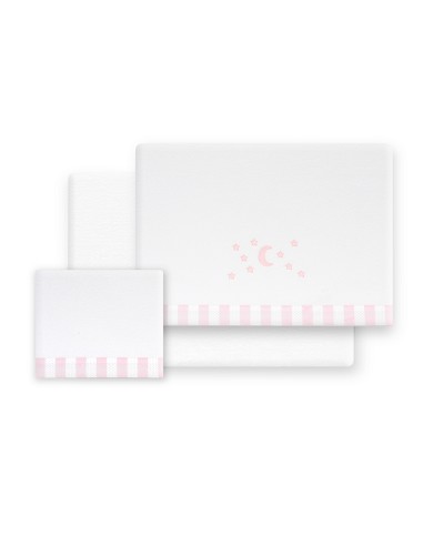 Triptico Cuna Coralina D. Algodon Luna Estrellas Bco/Rosa