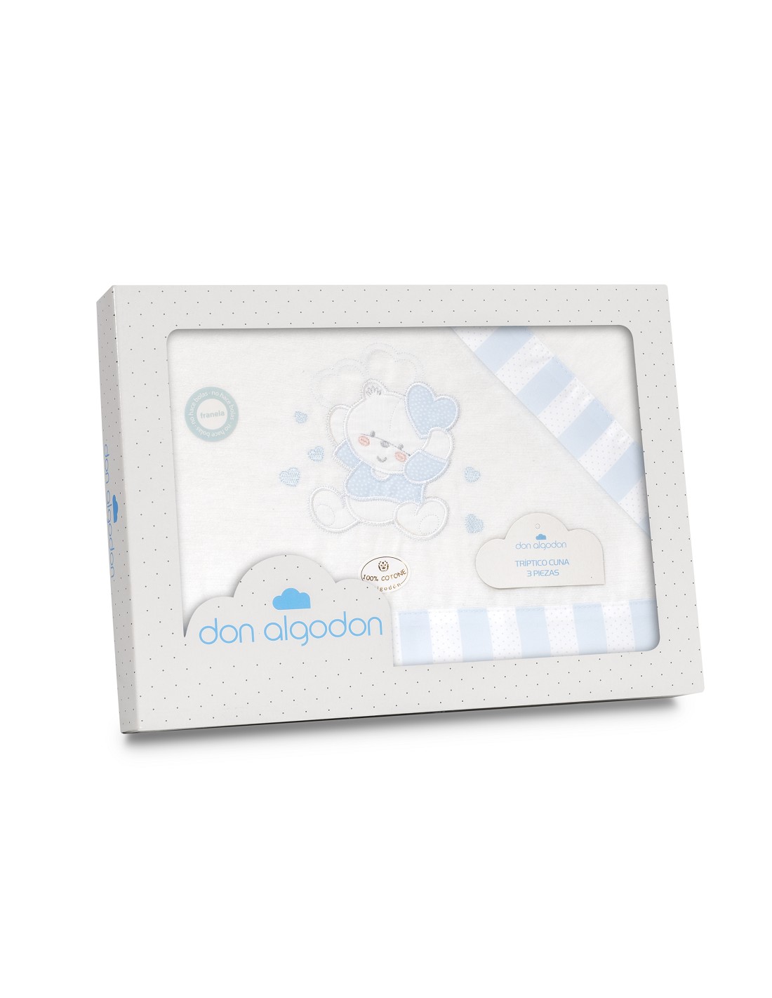 Triptico Coche Franela D. Algodon Oso Corazones Bco/Azul