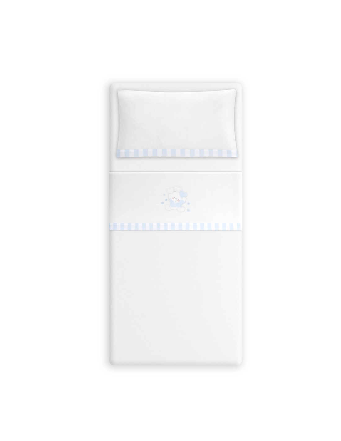 Triptico Cuna Franela D. Algodon Oso Corazones Bco/Azul