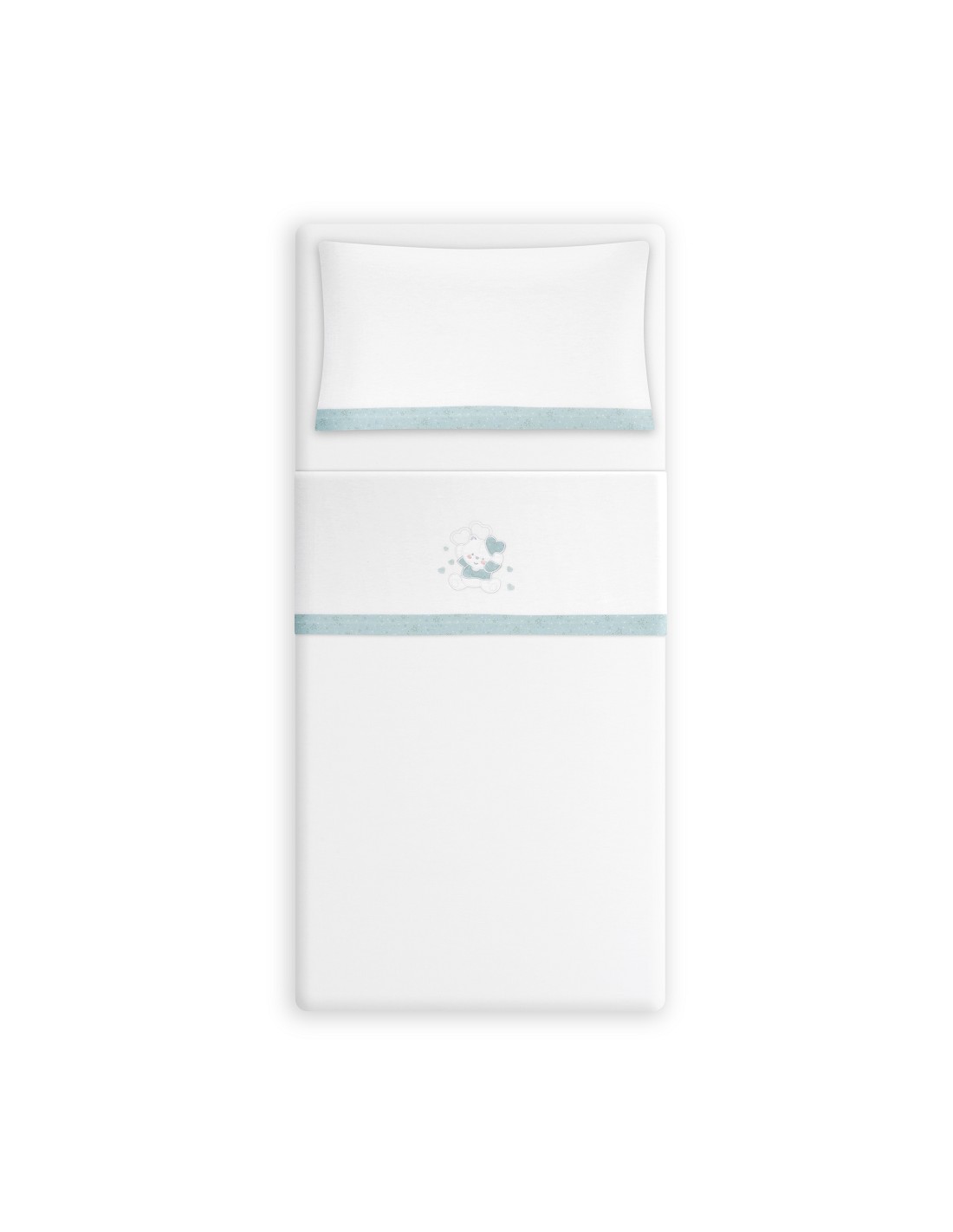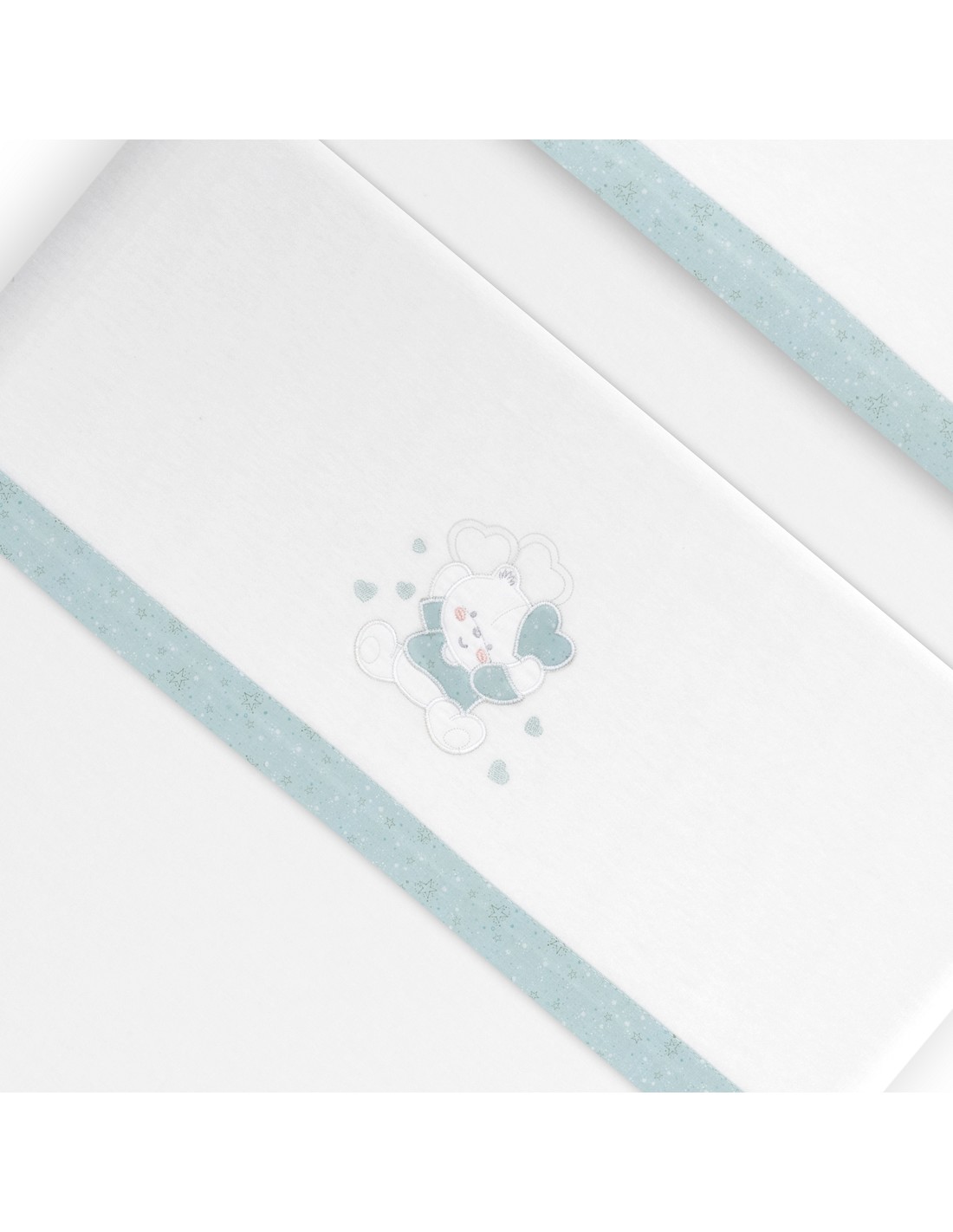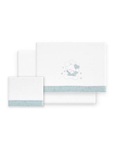 Triptico Cuna Franela D. Algodon Oso Corazones Bco/Verde