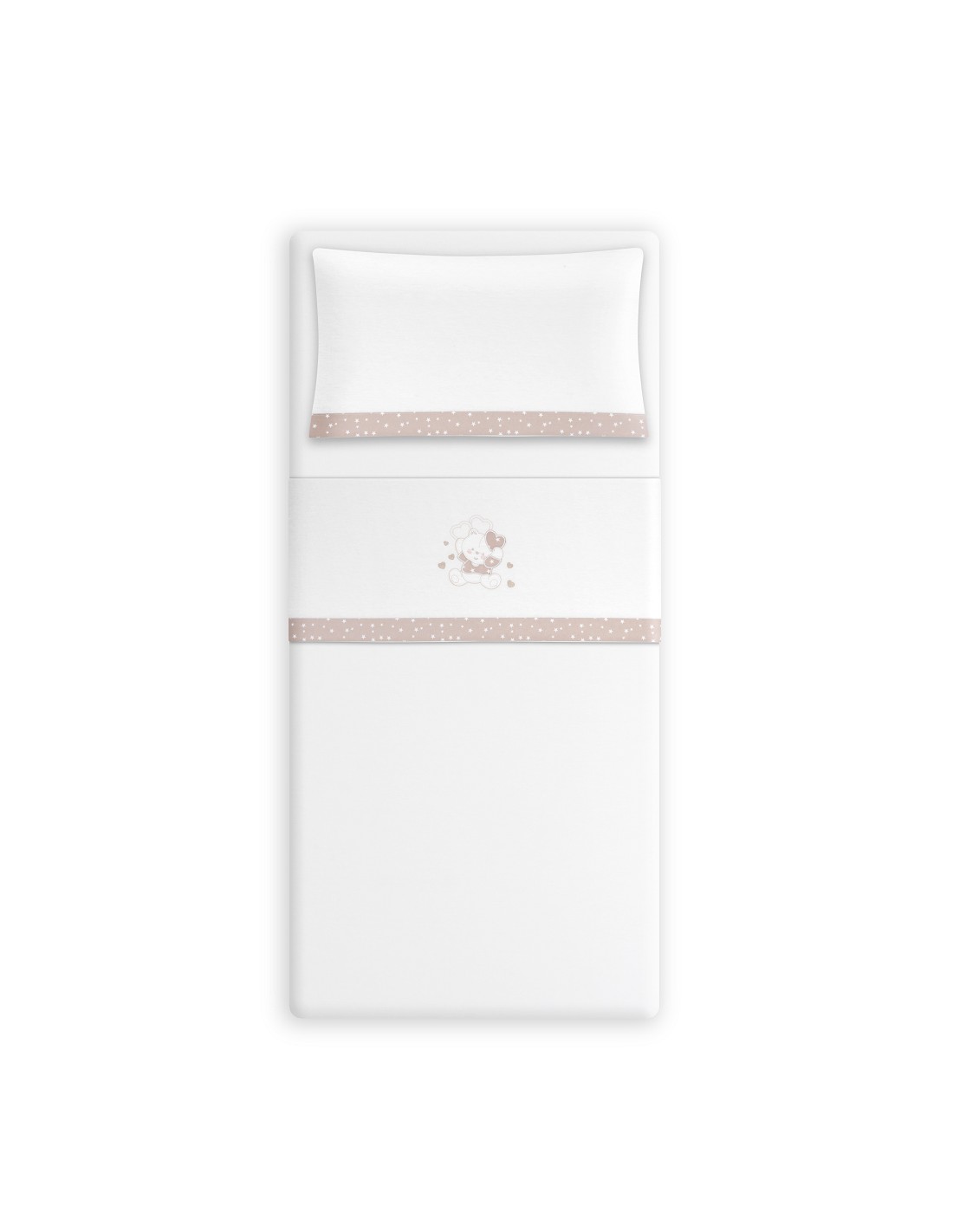 Triptico Cuna Franela D. Algodon Oso Corazones Bco/Beig