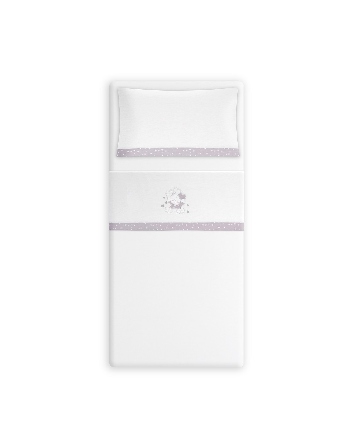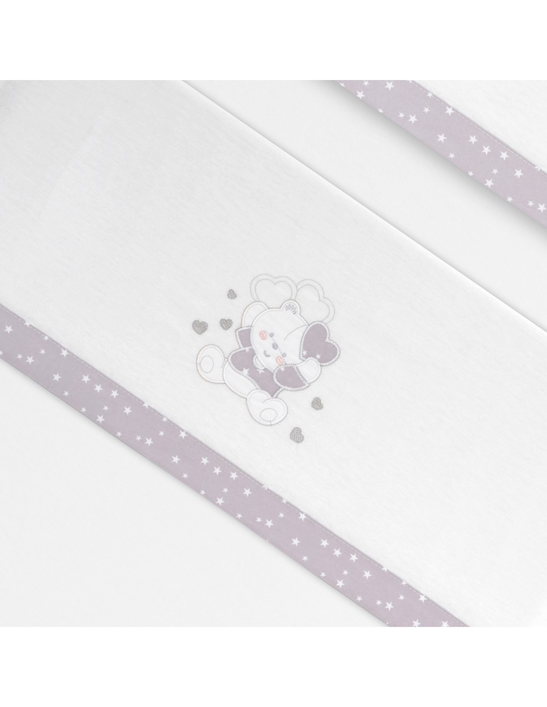 Triptico Cuna Franela D. Algodon Oso Corazones Bco/Gris