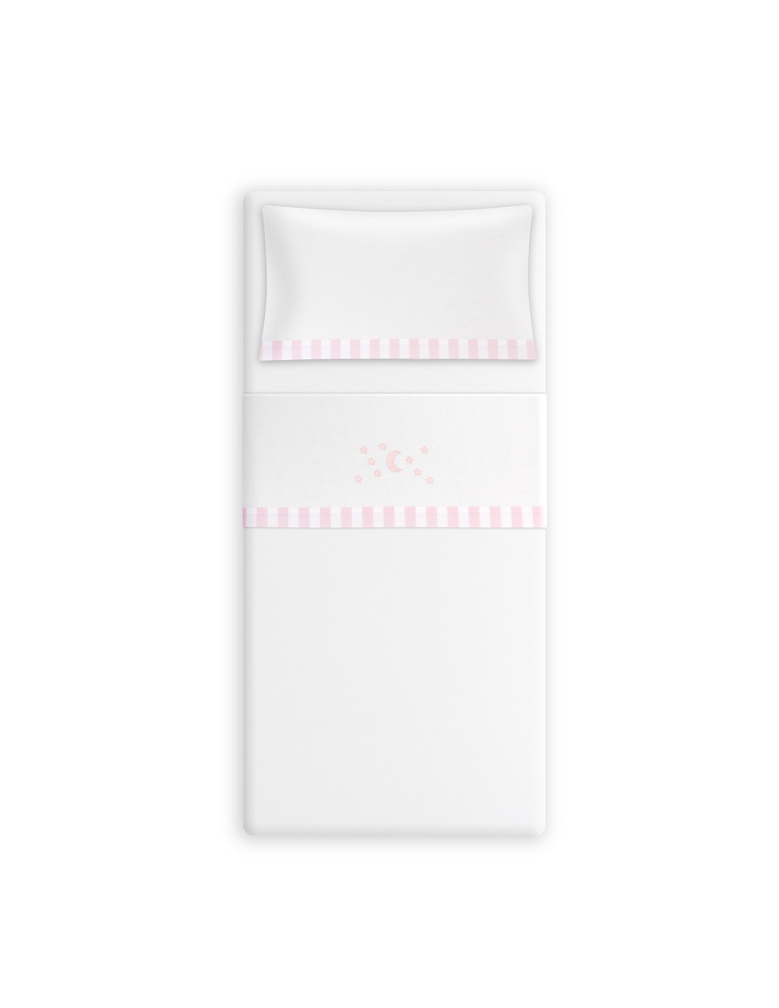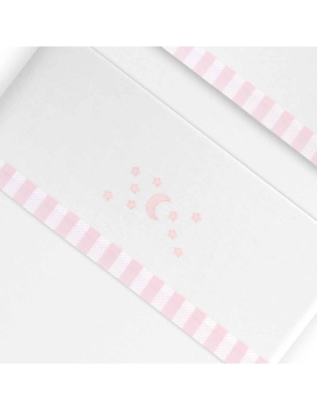 Triptico Cuna Franela D. Algodon Luna Estrella Bco/Rosa