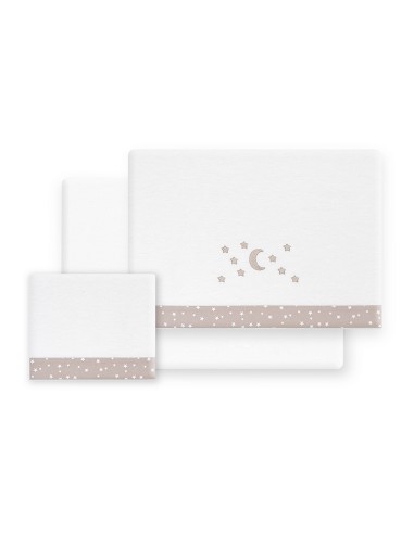 Triptico Minicuna Franela D. Algodon Luna Estrella Bco/Beig
