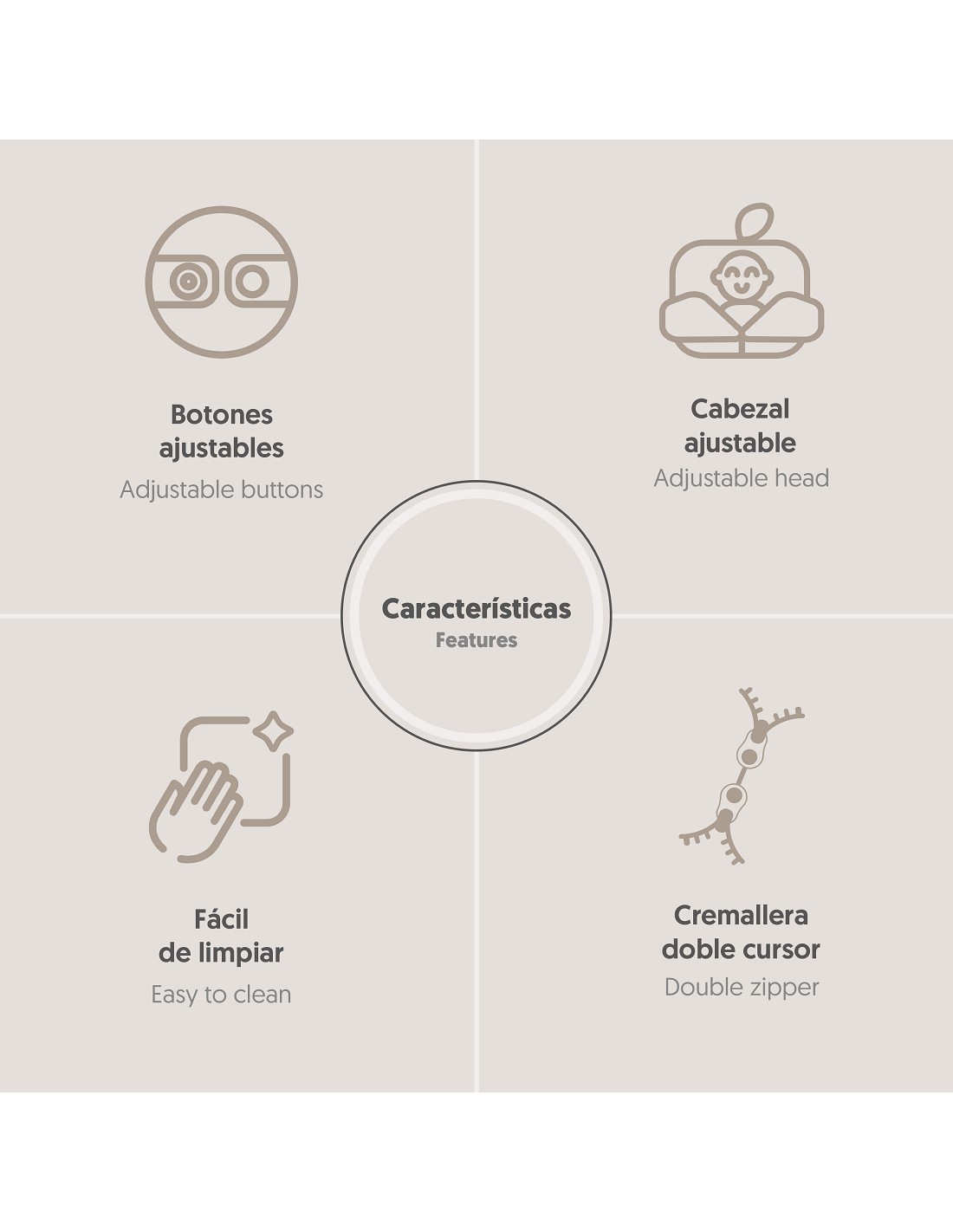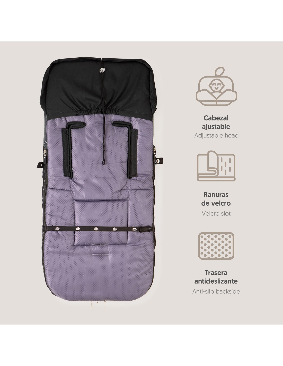 Saco universal para carro. Tejido técnico transpirable de tacto suave, dispersa el sudor y calor corporal. Desmontable en 2 piezas , sirviendo también como colchoneta. Incluye protector de pies. Sistema de cremalleras dobles que permite apertura total y lateral del saco. Fácil lavado . Fabricado con materiales antialérgicos . Máximo confort.
