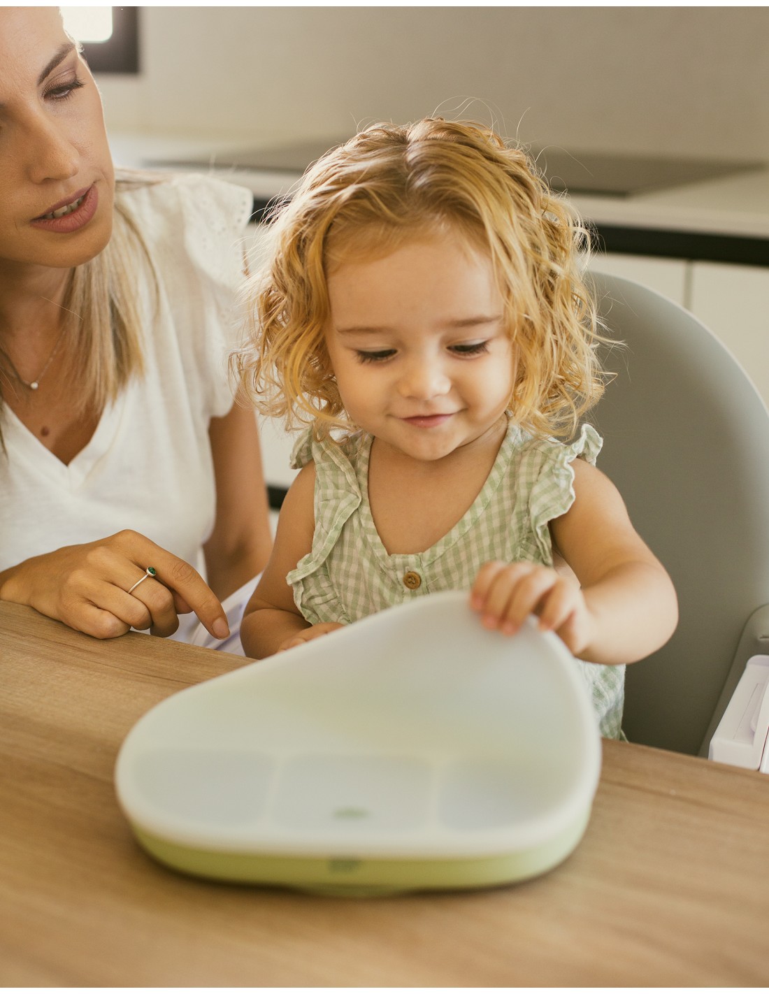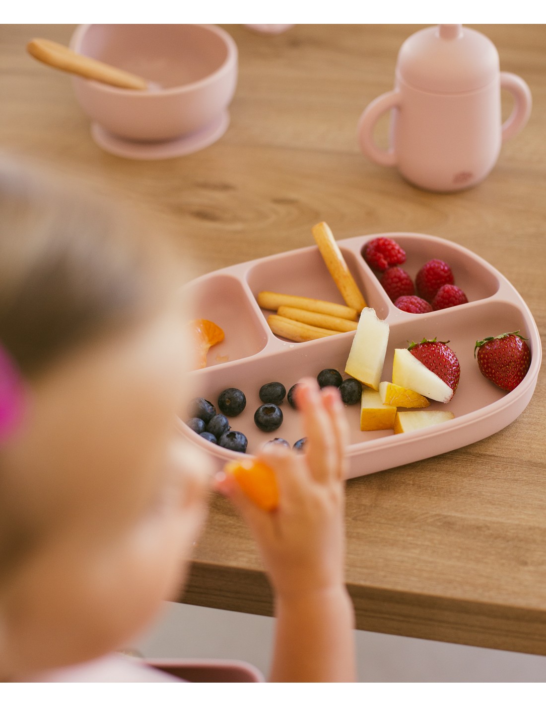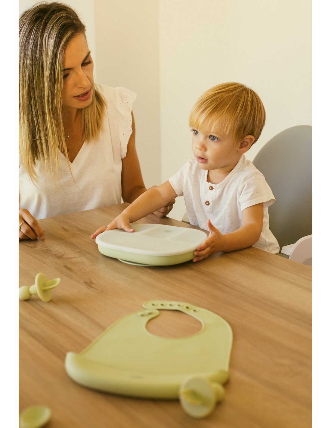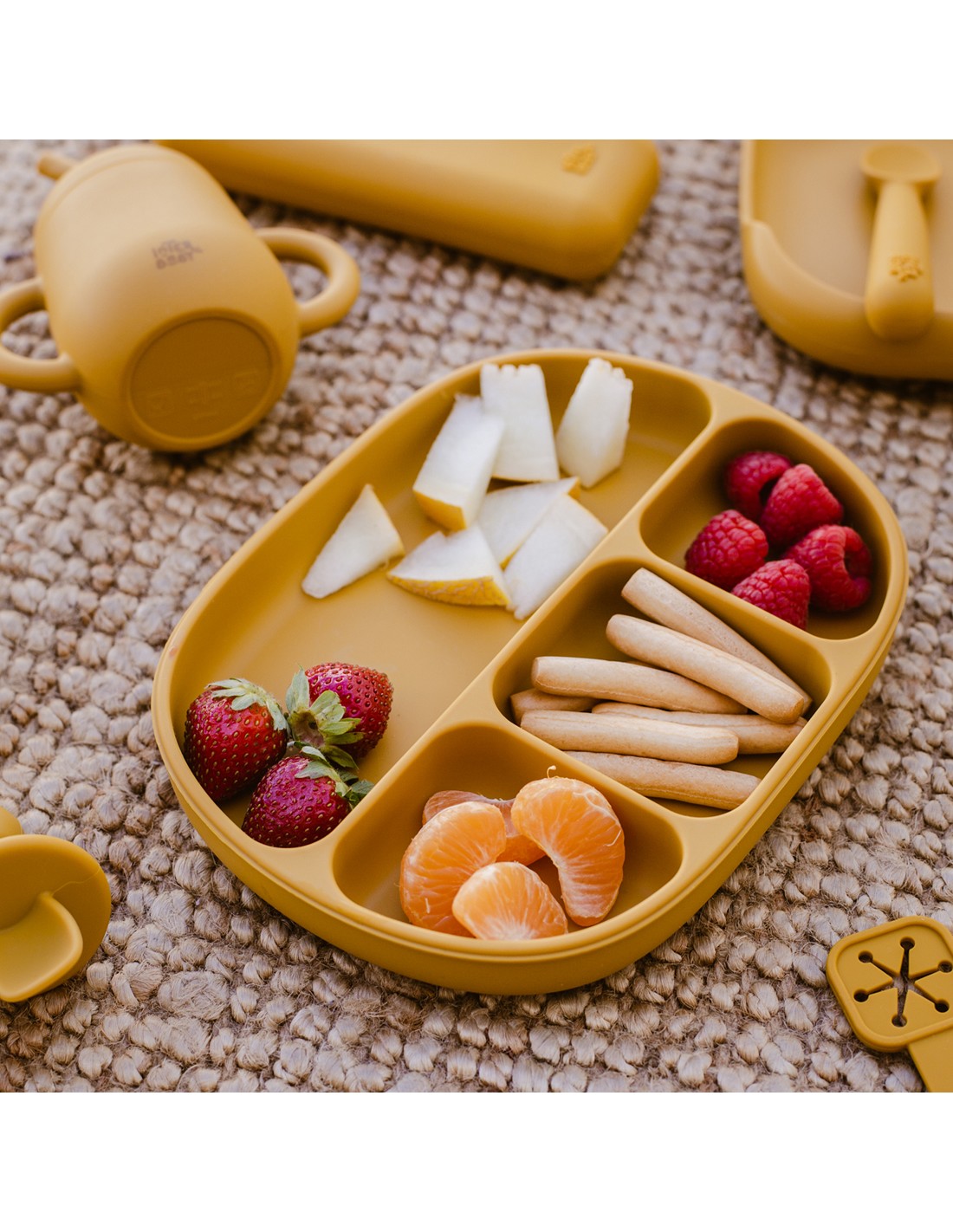 Plato de silicona que incorpora ventosas para eviatr accidentes. Dispone de 4 divisores para separar los distintos tipos de comida y que tu bebé experimente de manera individual el sabor y la textura de cada uno de ellos. Incluye tapadera para mejor conservación de la comida. Fácil limpieza y muy resistente. Libre de posibles infecciones al estar fabricado en silicona libre de BPA, PVC, Vinilo, Plomo y ftalatos. Apto para lavavajillas.