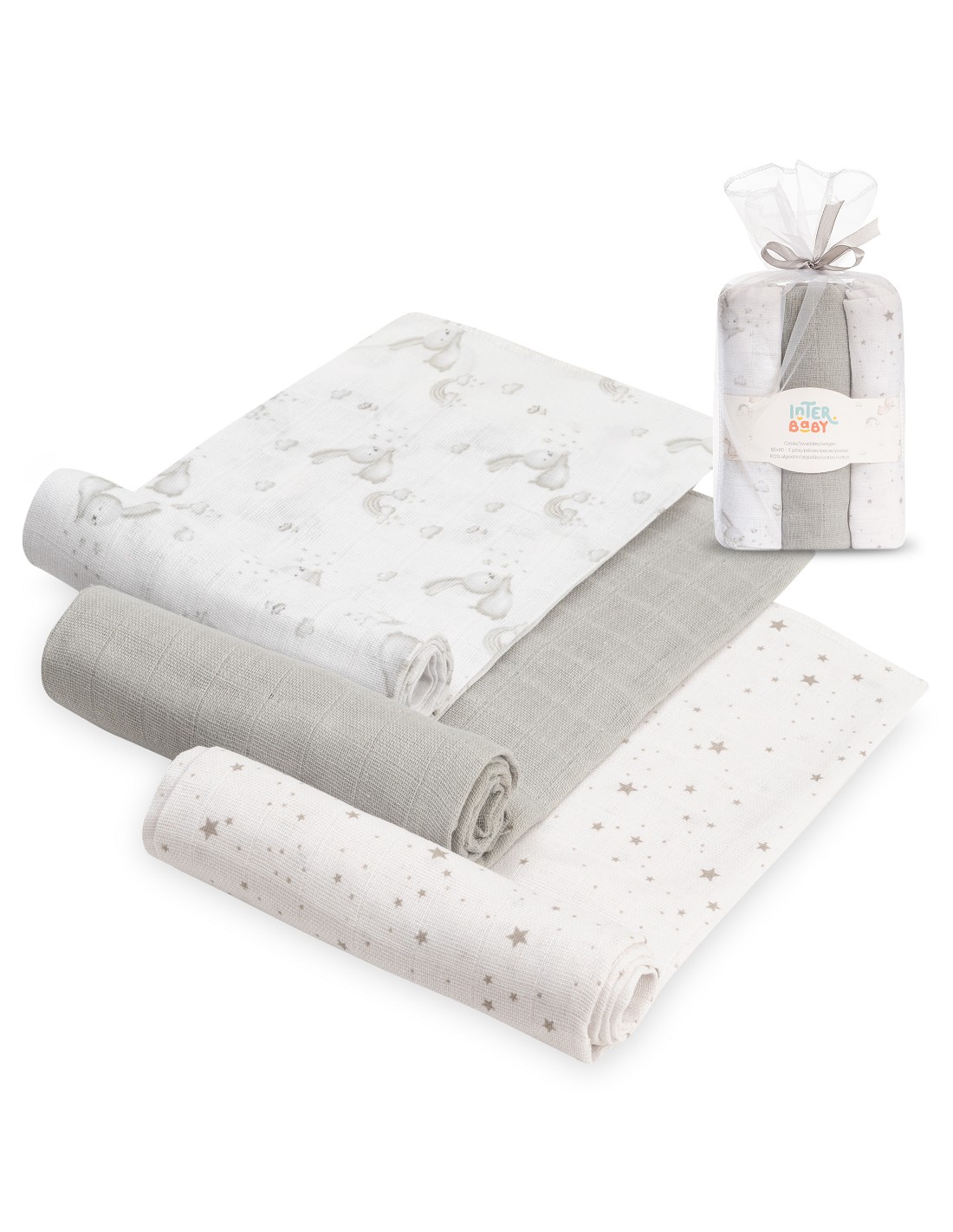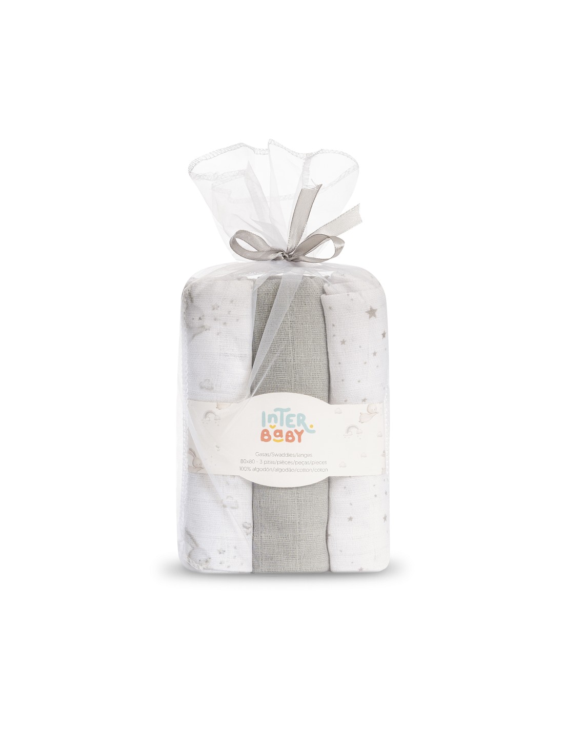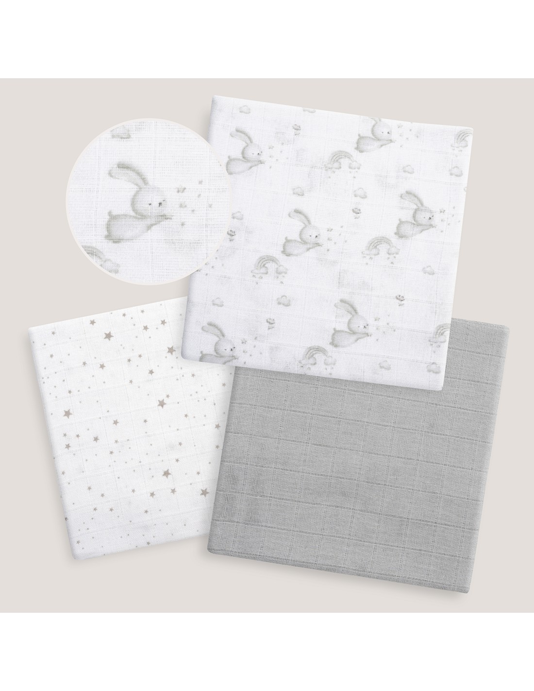 Gasas 80X80 Pack3 Modelo Conejitos Estrellas Gris