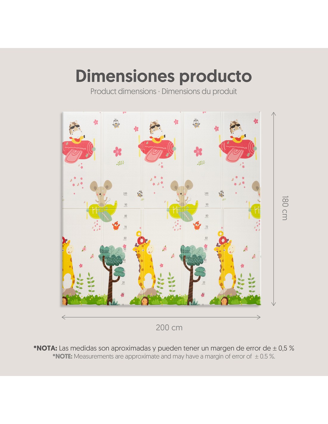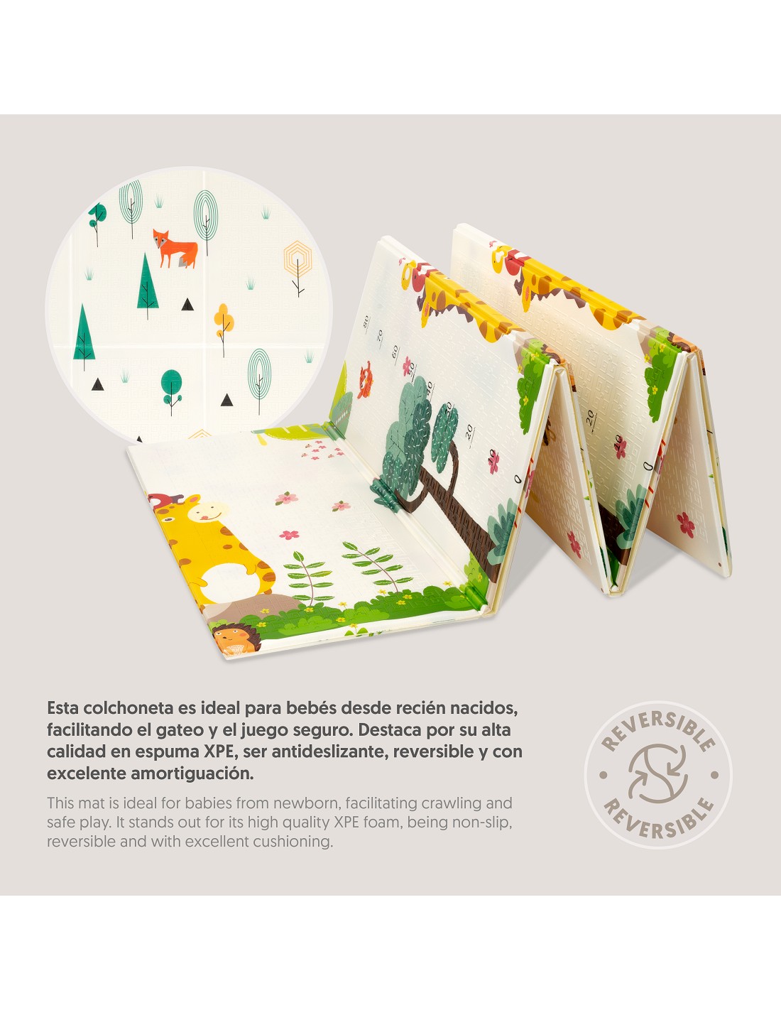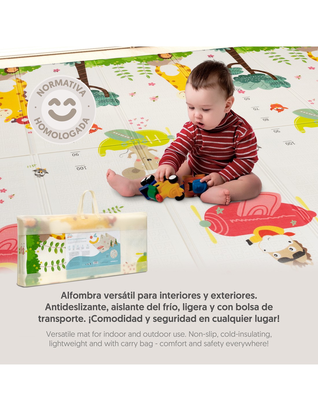 Colchoneta perfecta para que los bebes aprendan a gatear. No tiene restricciones de edad, desde los primeros meses de vida. Fabricado en espuma XPE original. Es antideslizante y se adhiere perfectamente al suelo. Reversible, un diseño diferente por cada lado de la alfombra. Impermeable y muy fácil de limpiar. Aisla del suelo frío. Excelente amortiguación en caso de caída- Puedes ser usado por personas alérgicas - Antibacteriano 100% seguro . No contiene ni Bisfenol A( BPA) . ni PVC, ni fallatos , ni formamida. Cumple todas las normativas de seguridad europeas. incluye práctica bolsa de tranporte.