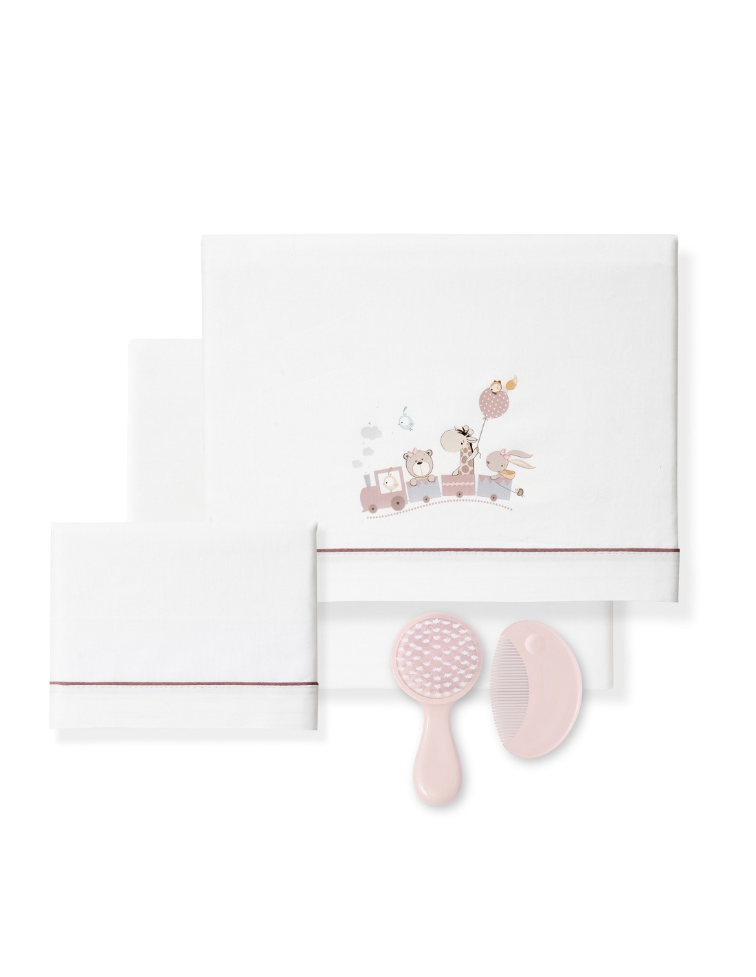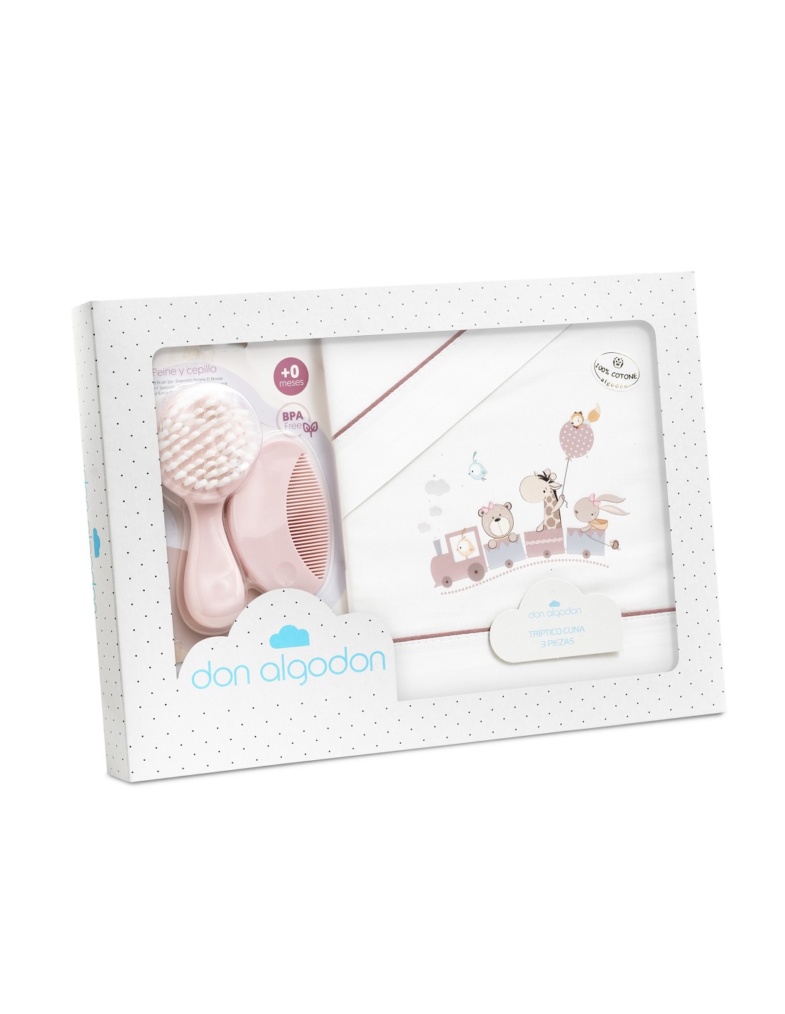 Triptico Cuna 100% Algodon Mod. Jirafa Tren+Kit Peine y Cepillo Bco/Maquillaje