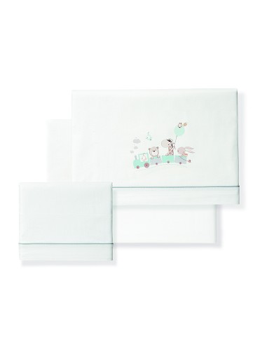 Triptico Minicuna 100% Algodon Mod. Jirafa Tren Bco/Verde