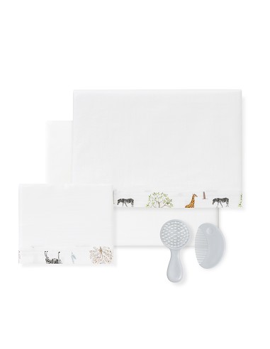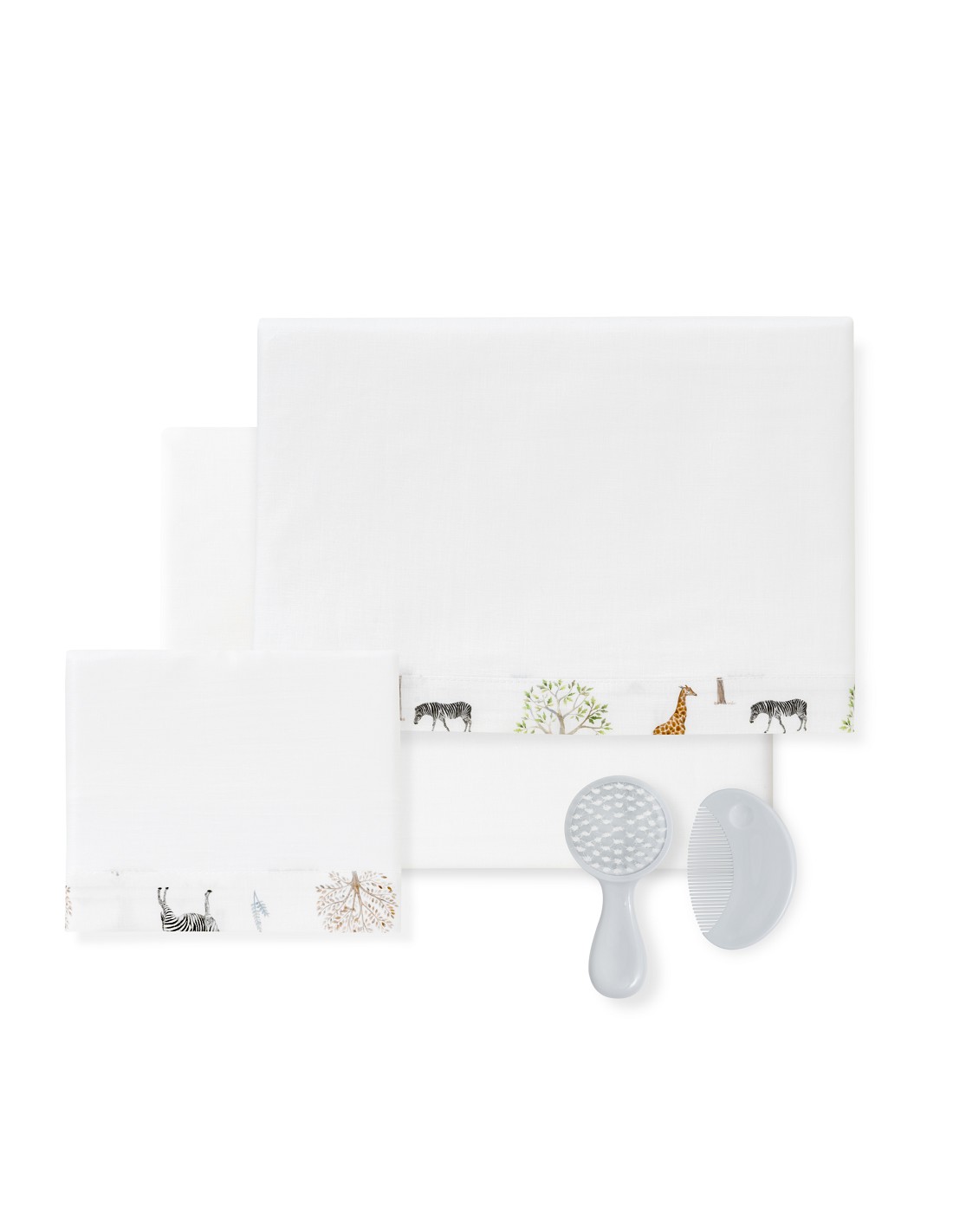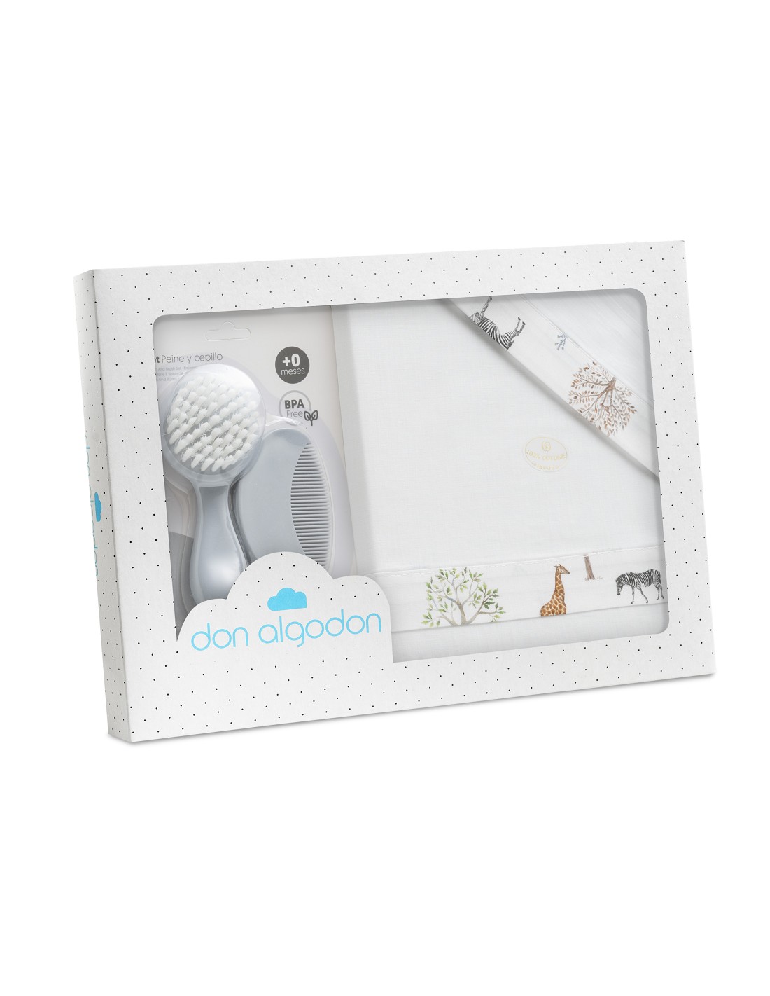 Triptico Cuna 100% Algodon Mod. Serengueti+Kit Peine y Cepillo Blanco