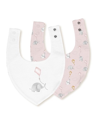 Pack 2 Baberos Bandana 20X30 Cms Mod Elefante Cometa Bco/Rosa