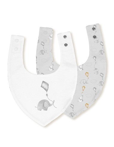Pack 2 Baberos Bandana 20X30 Cms Mod Elefante Cometa Bco/Gris