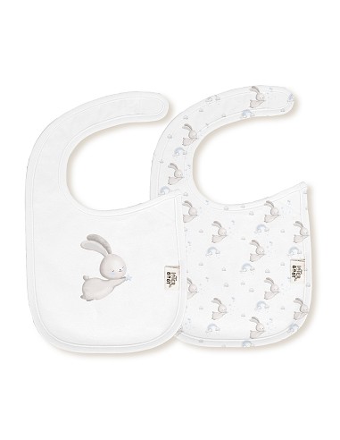 Pack 2 Baberos 20X30 Cms Mod Conejito Estrella Bco/Azul
