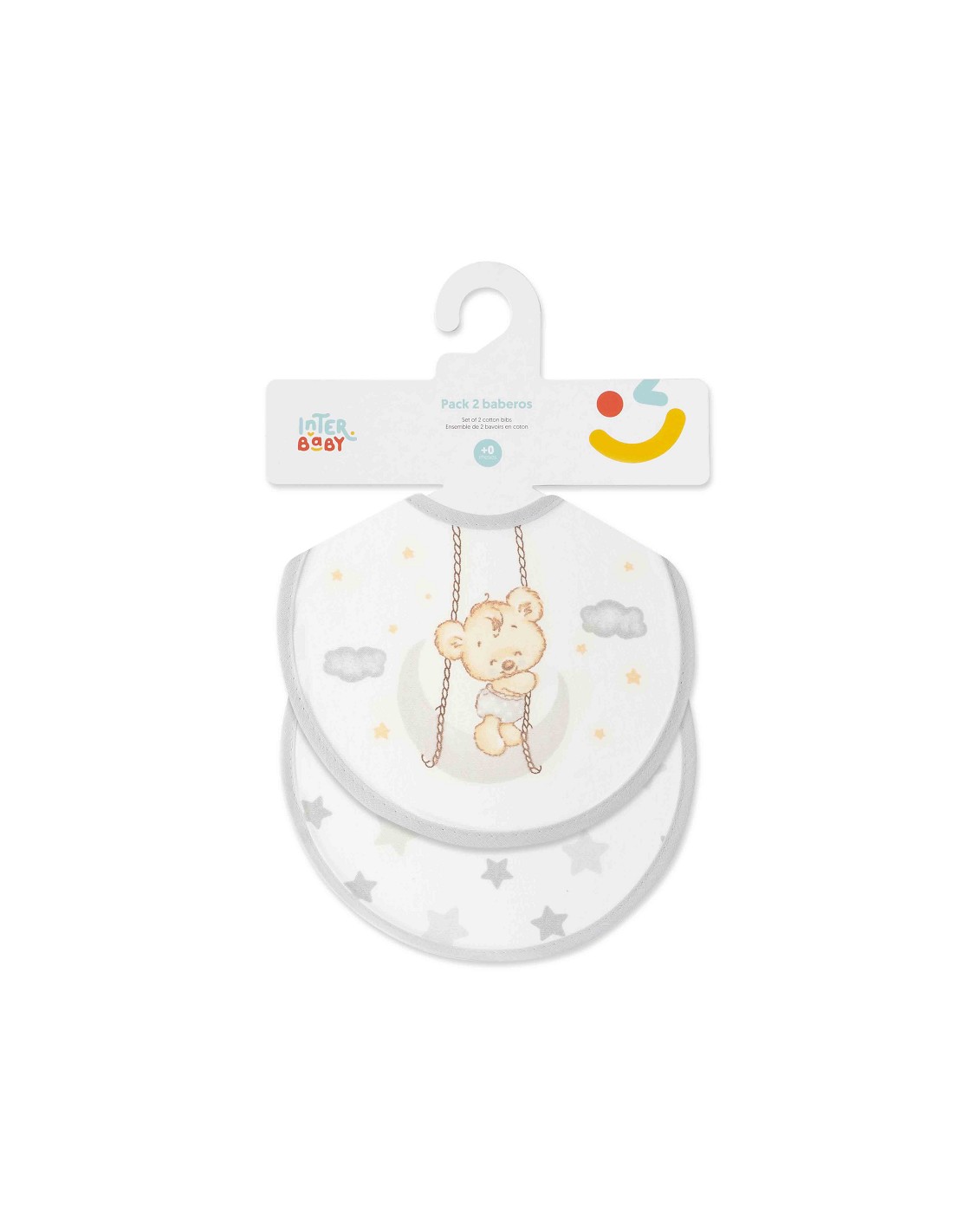 Pack 2 Baberos 20X20 Osito Luna Estrellas Gris