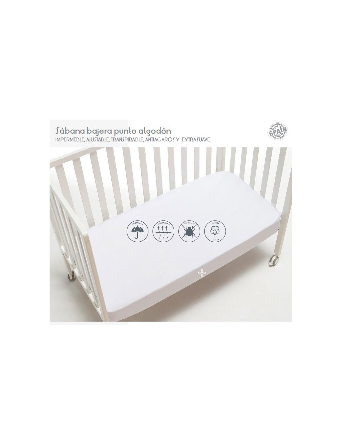 Bajera Cuna Punto 100 % Alg Impermeable, Transpirable Antiacaros60X1. 20