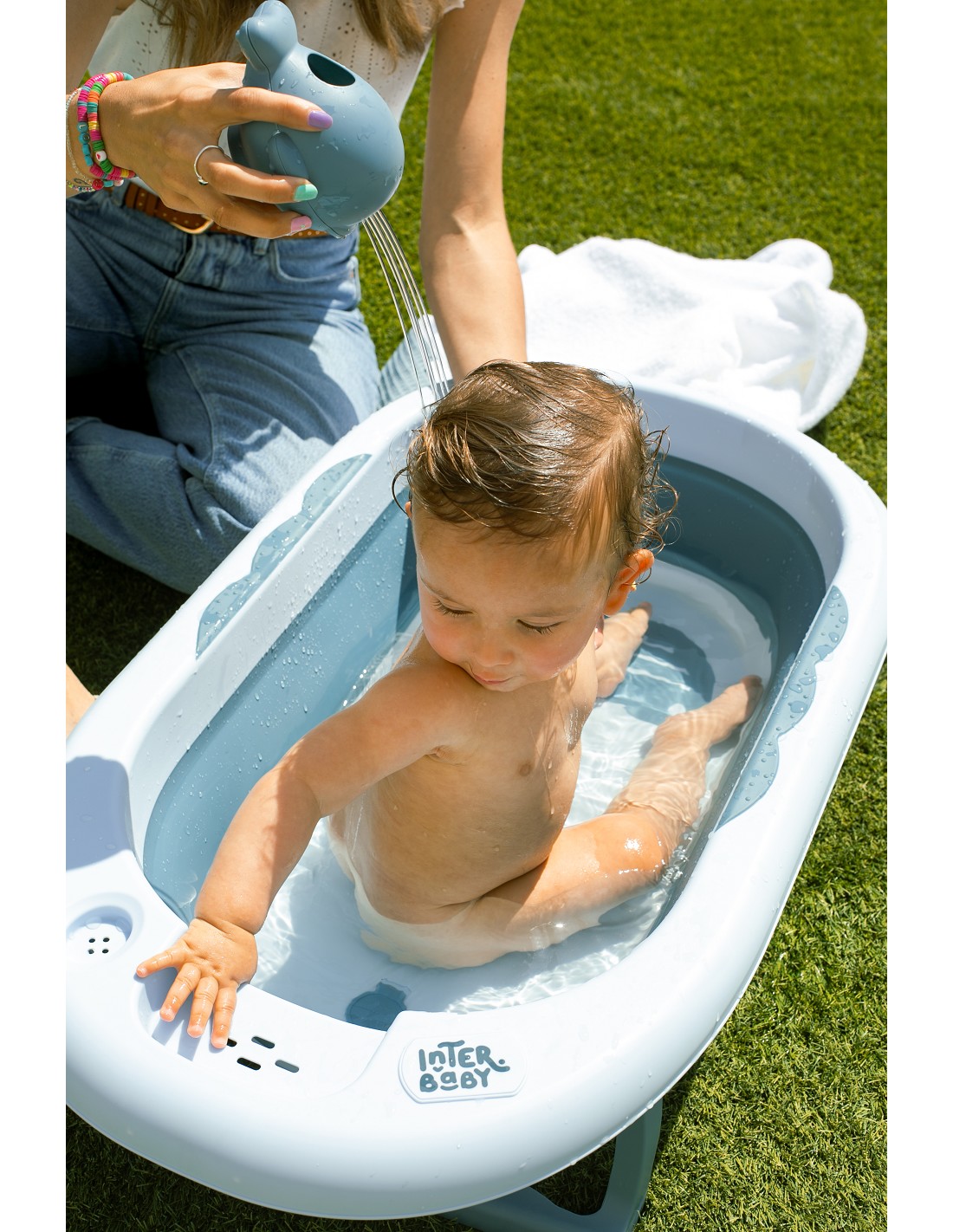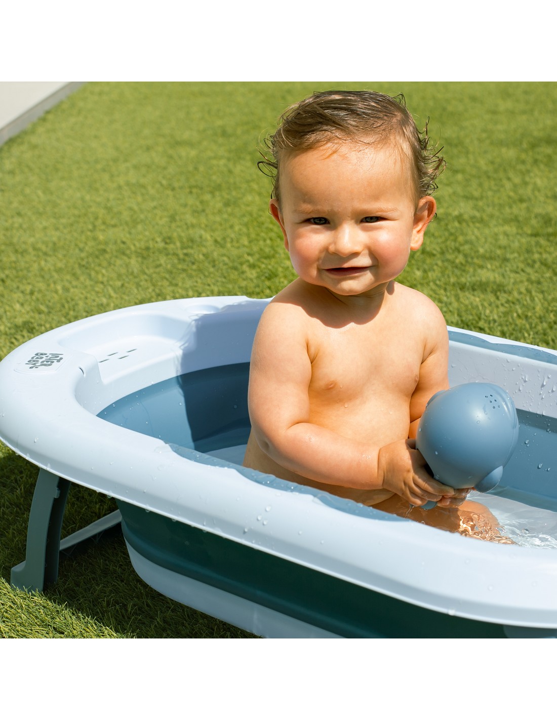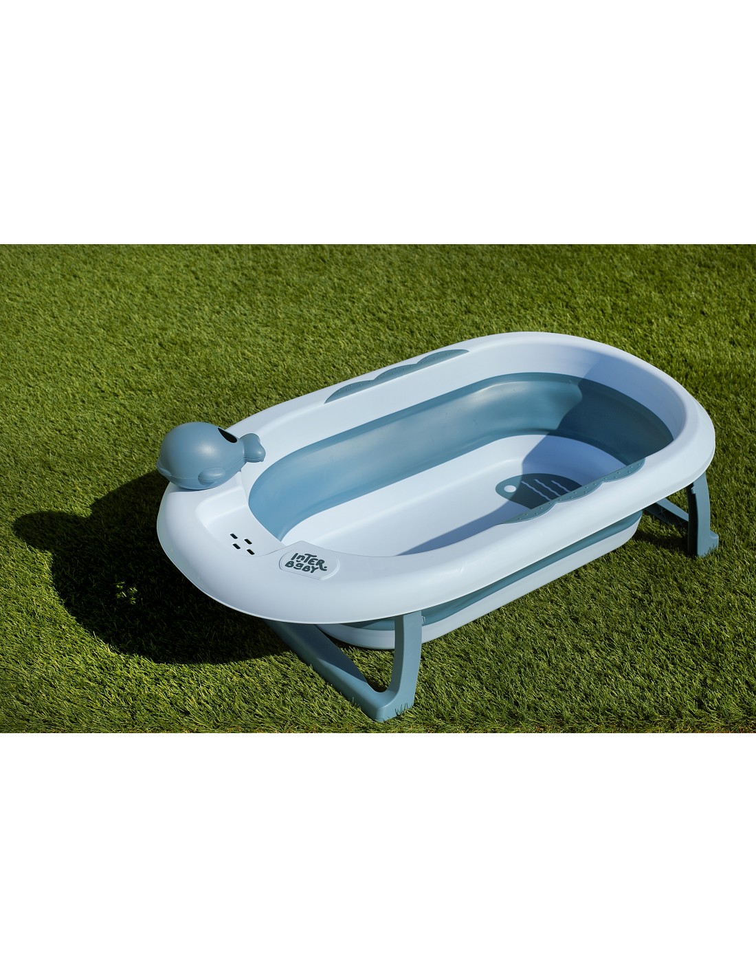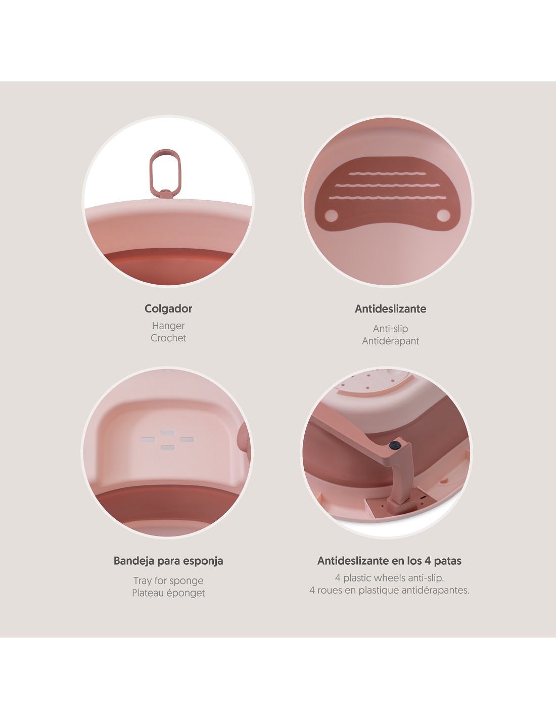 Bañera plegable antideslizante. 4 ventosas. taza enjuague. tapón hermético. bandeja para esponja. colgador. uso de 0 a 6 meses