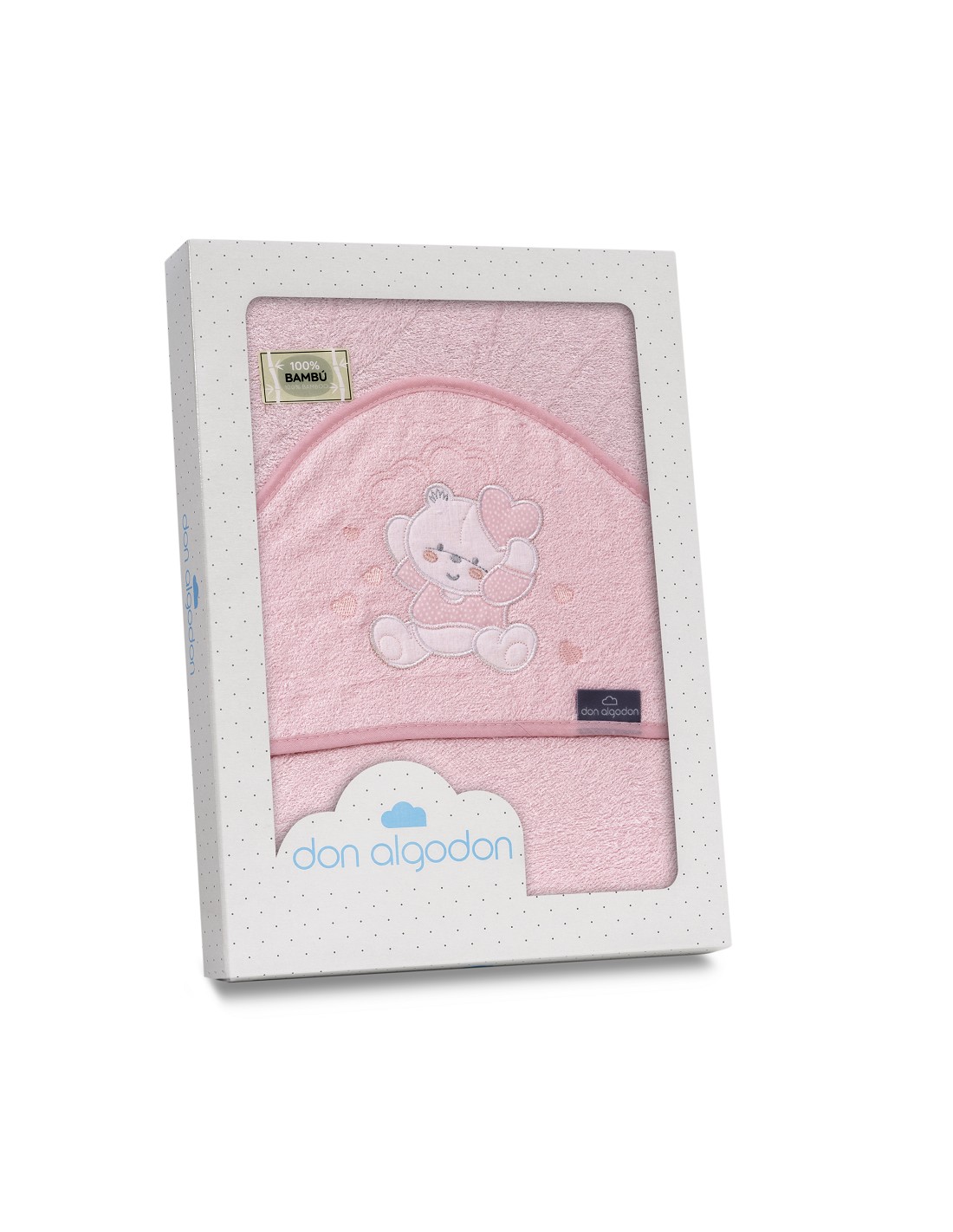 Capa de Baño 1X1 Bambu D. Algodon Oso Corazones Rosa