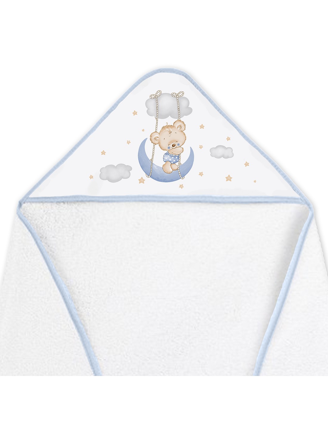 Capa de Baño 1X1 con Babero Modelo Osito Luna Bco/Azul