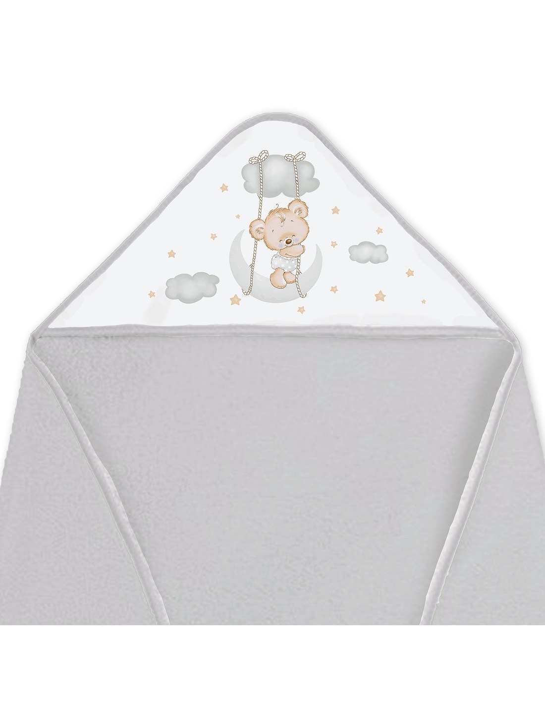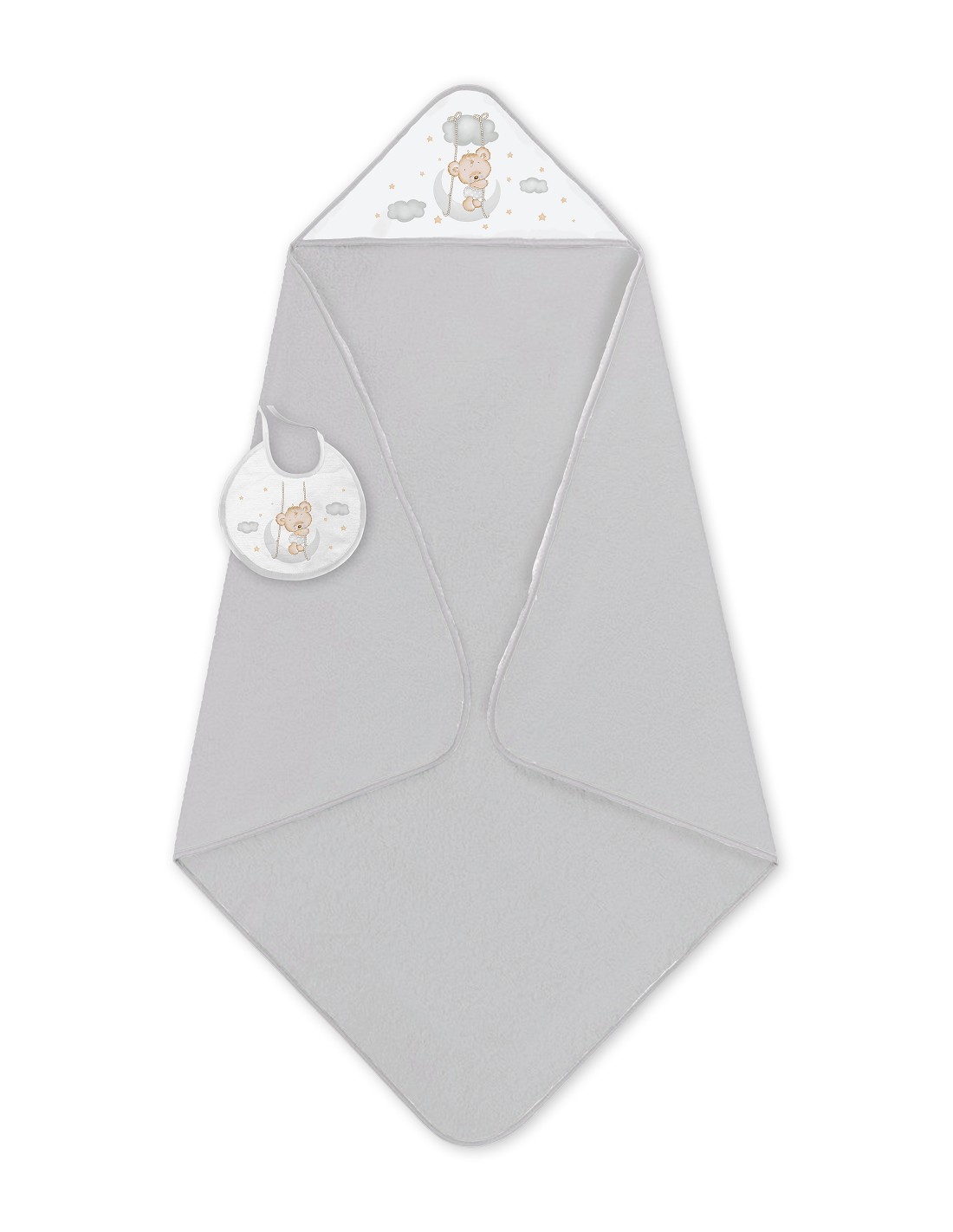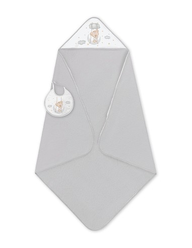 Capa de Baño 1X1 con Babero Modelo Osito Luna Gris
