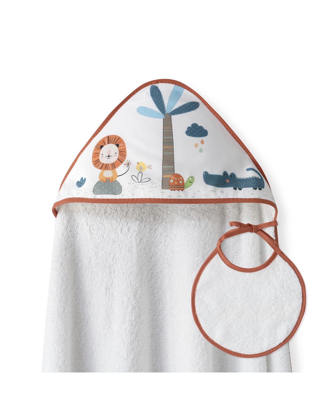 Capa Baño 1X1 Mod Leon Palmera+Babero Bco/Naranja
