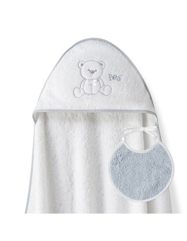 Capa Baño 1X1 Mod Oso Lazo+Babero Bco/Gris