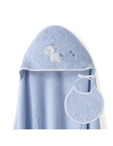 Capa Baño 1X1 Mod Unicornio Nubes+Babero Azul