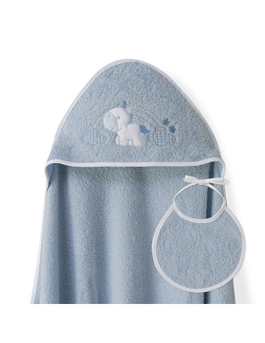 Capa Baño 1X1 Mod Unicornio Nubes+Babero Petroleo