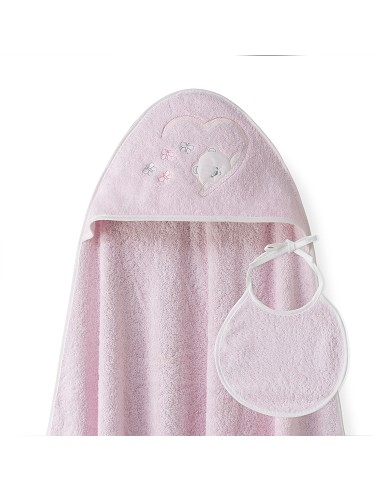 Capa Baño 1X1 Mod Oso Mariposas+Babero Rosa