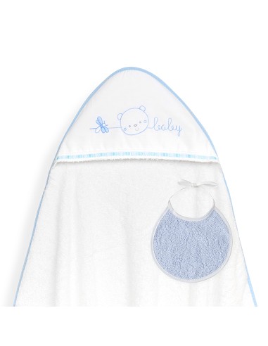 Capa Baño 1X1 Mod Cara Osito Baby Pasacinta+Babero Bco/Azul