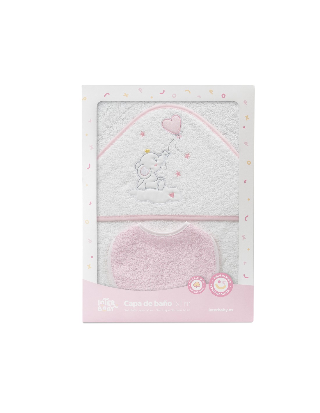Capa Baño 1X1 Mod Elefante Globo Corazon Bco/Rosa