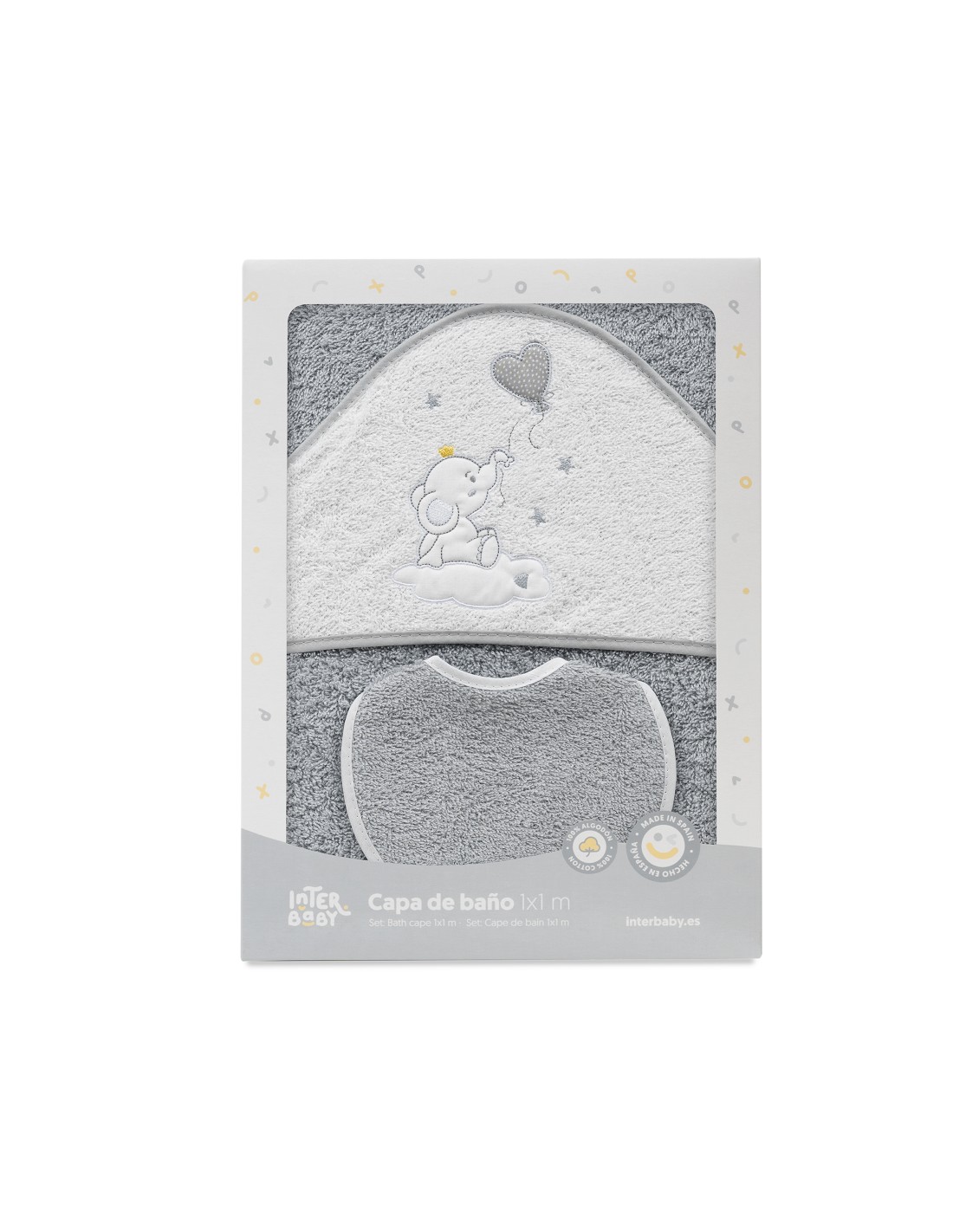 Capa Baño 1X1 Mod Elefante Globo Corazon Gris