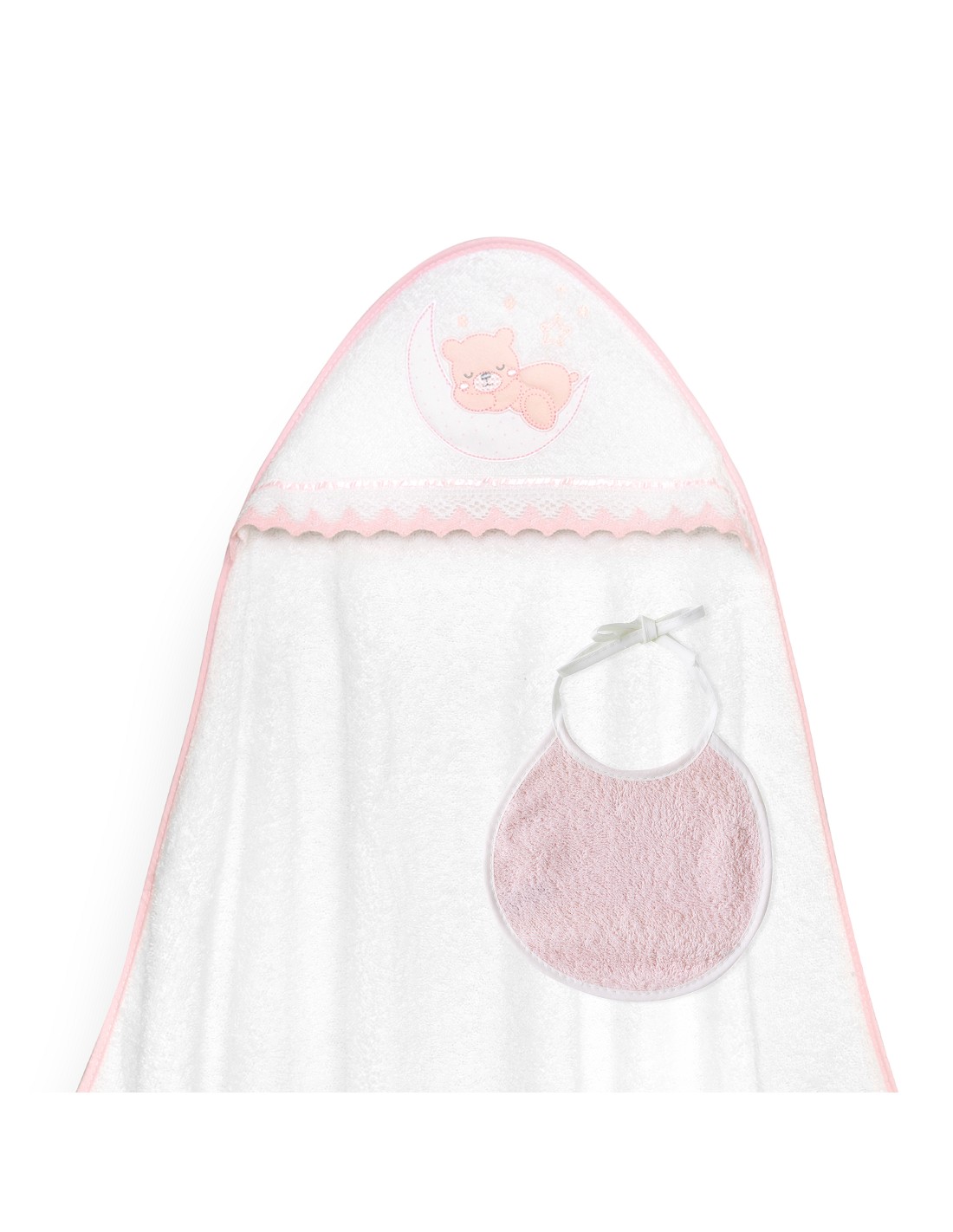 Capa Baño 1X1 Mod Osito Luna Guipur+Babero Bco/Rosa