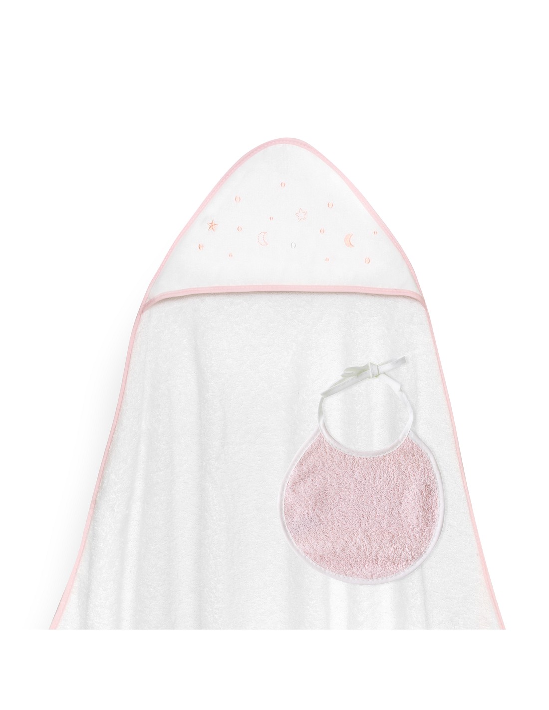 Capa Baño 1X1 Mod Estrellas Lunas Bodoques+Babero Bco/Rosa