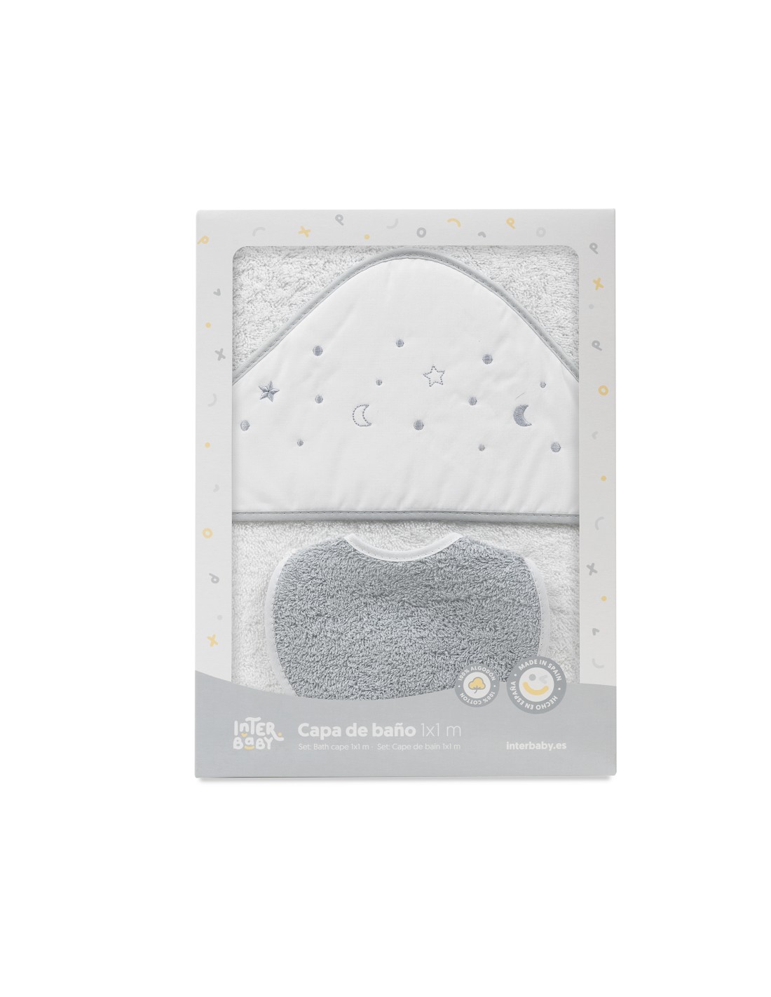 Capa Baño 1X1 Mod Estrellas Lunas Bodoques+Babero Bco/Gris