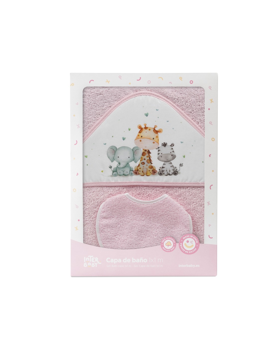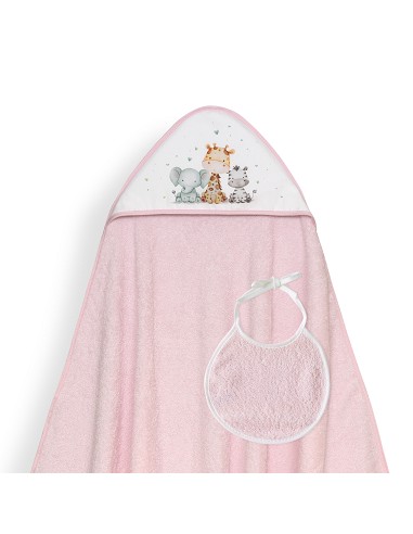 Capa Baño 1X1 Mod Jirafa Elefante Estampado+Babero Rosa