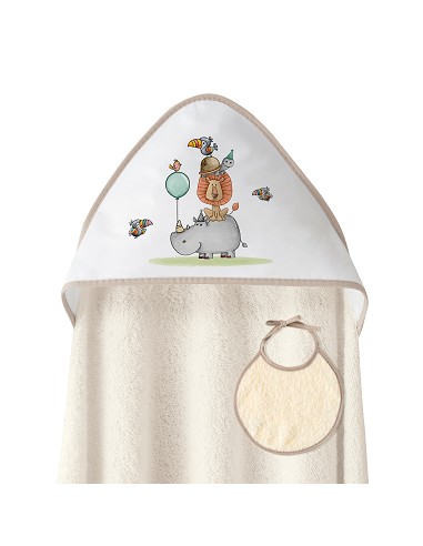 Capa de baño 100 % algodón. Idela para secar a tu bebé despues de su baño. Secado rápido y confortable.