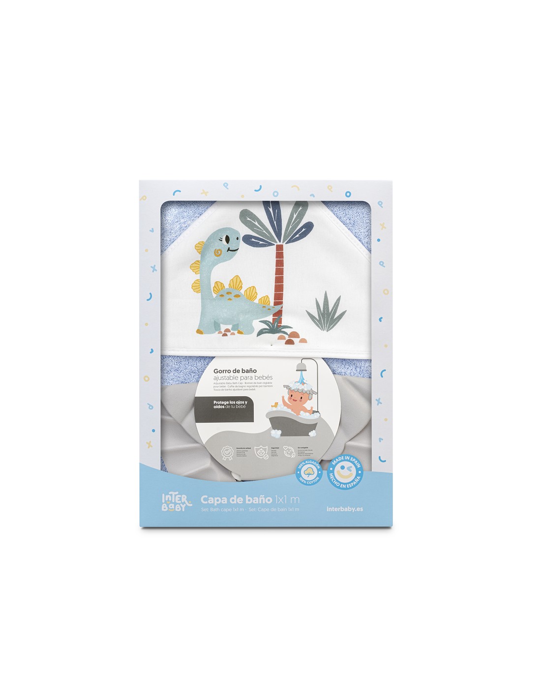 Capa Baño 1X1 Mod Estampado Dinosaurio Palmera+Gorro Azul
