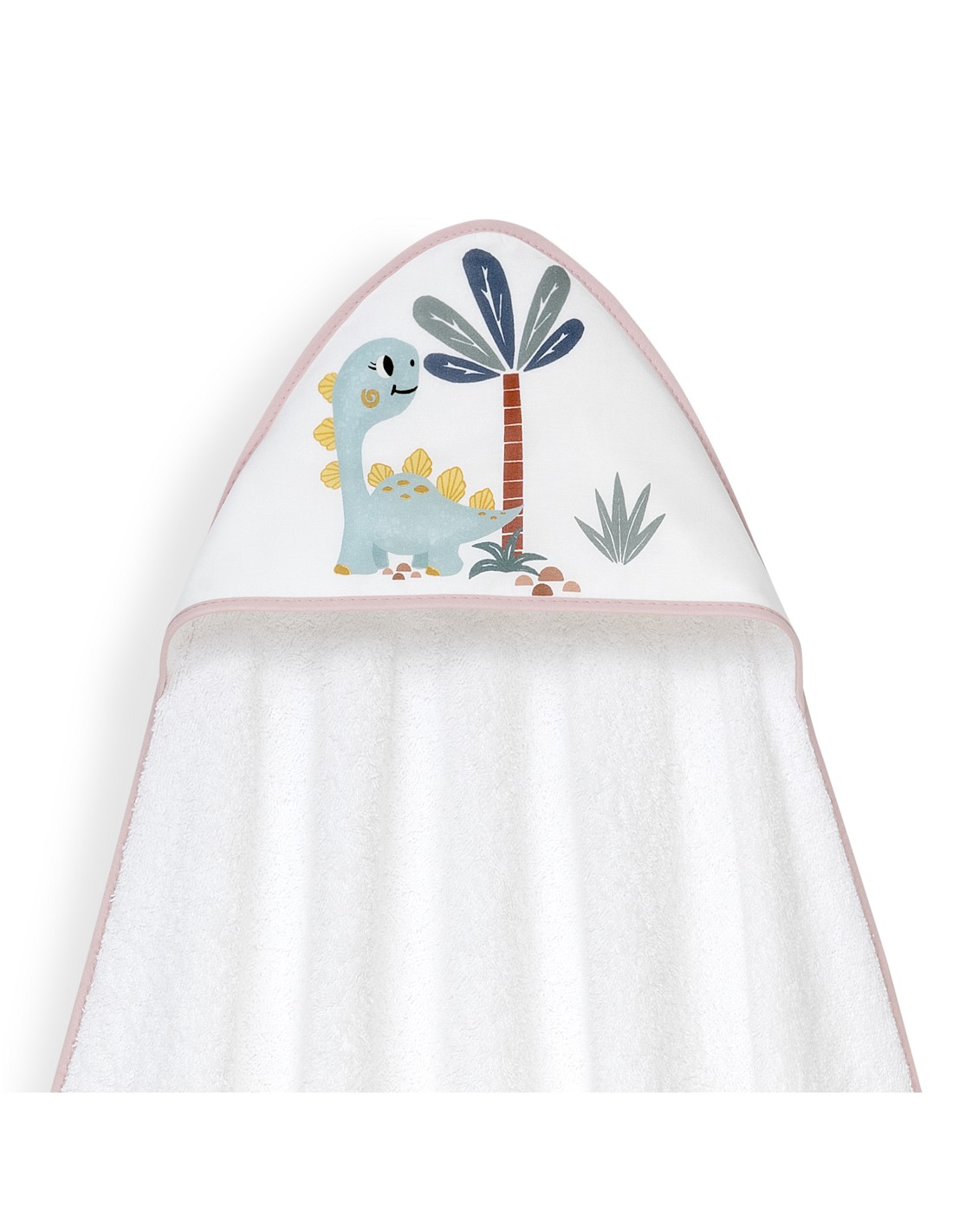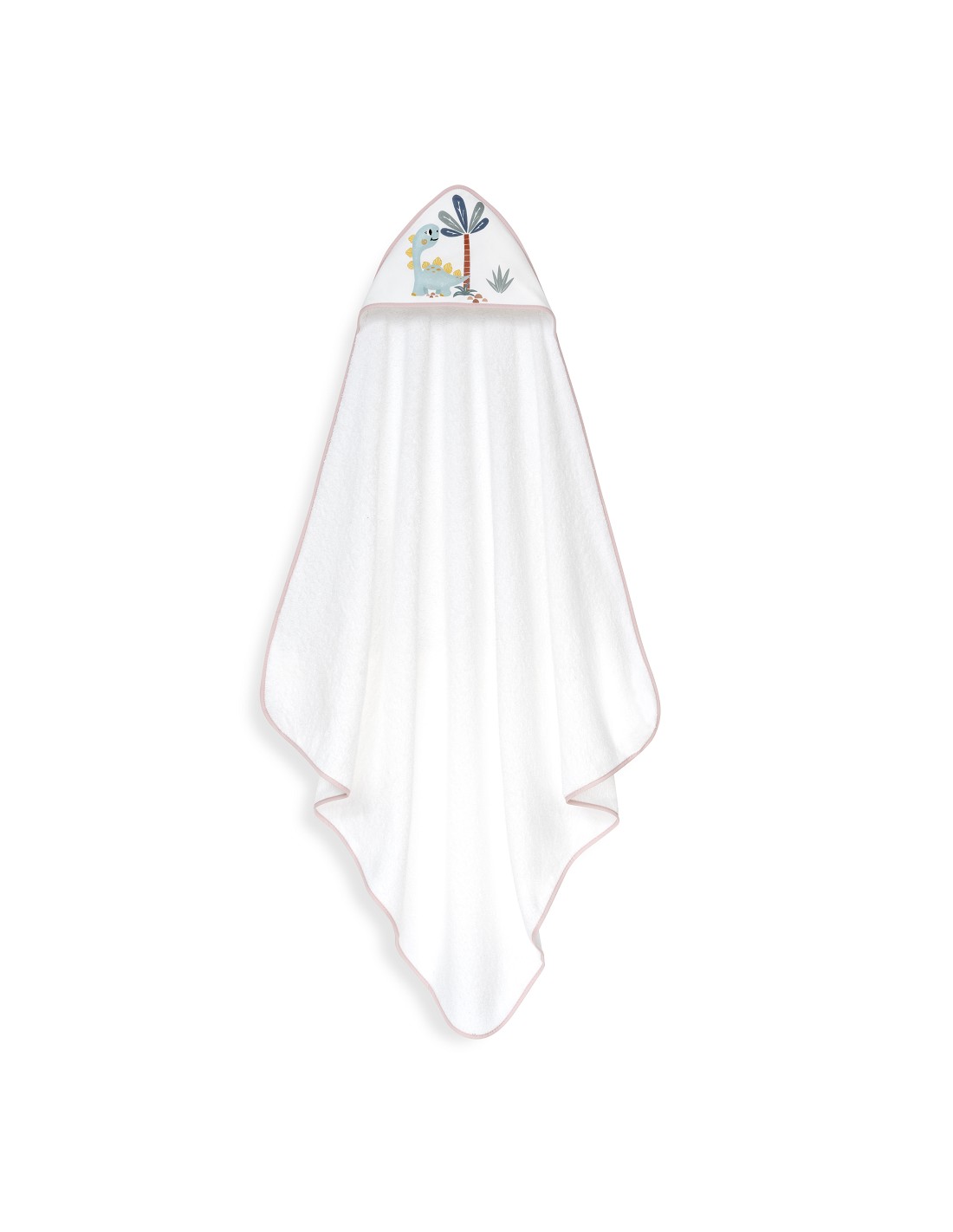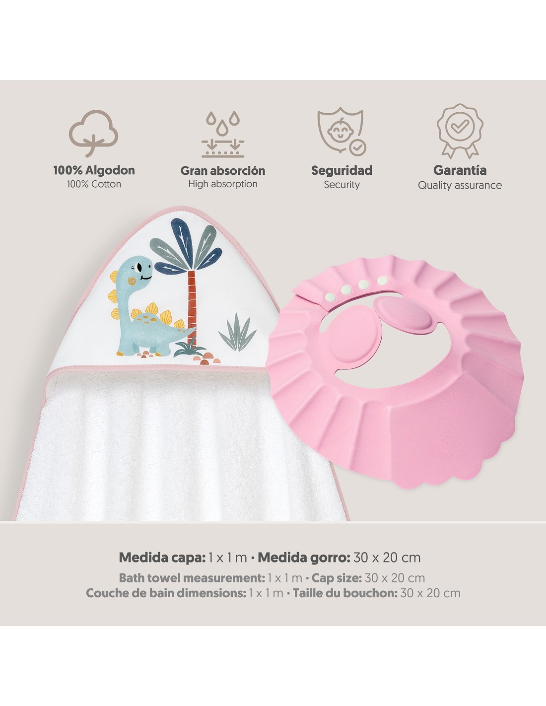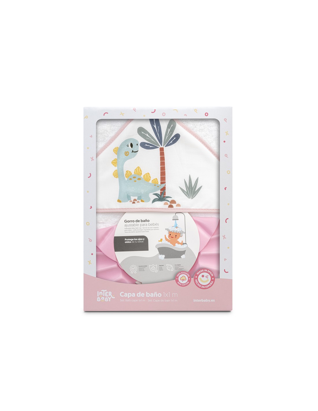 Capa Baño 1X1 Mod Estampado Dinosaurio Palmera+Gorro Bco/Rosa