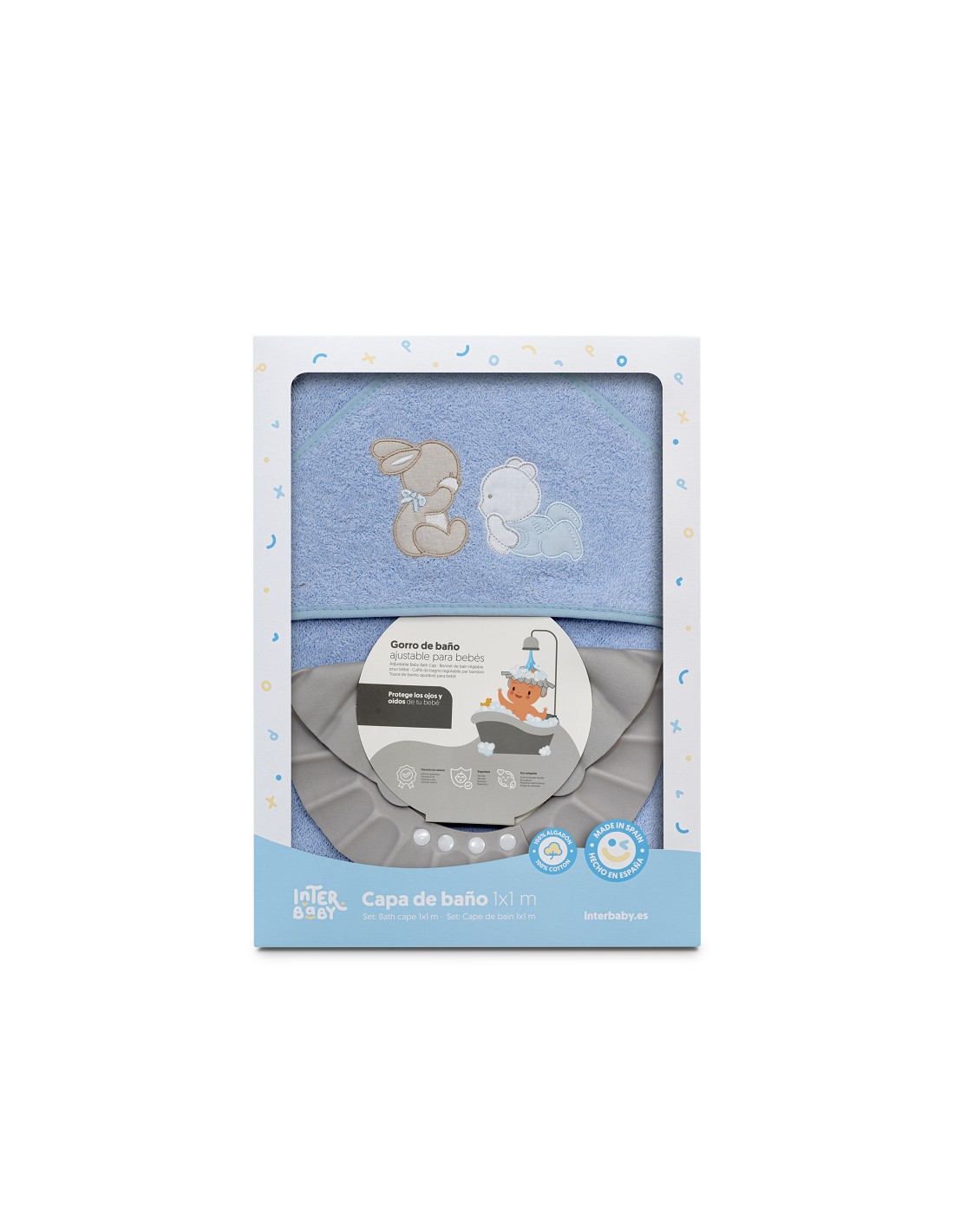 Capa Baño 1X1 Mod Oso Tumbado Conejito+Gorro Azul