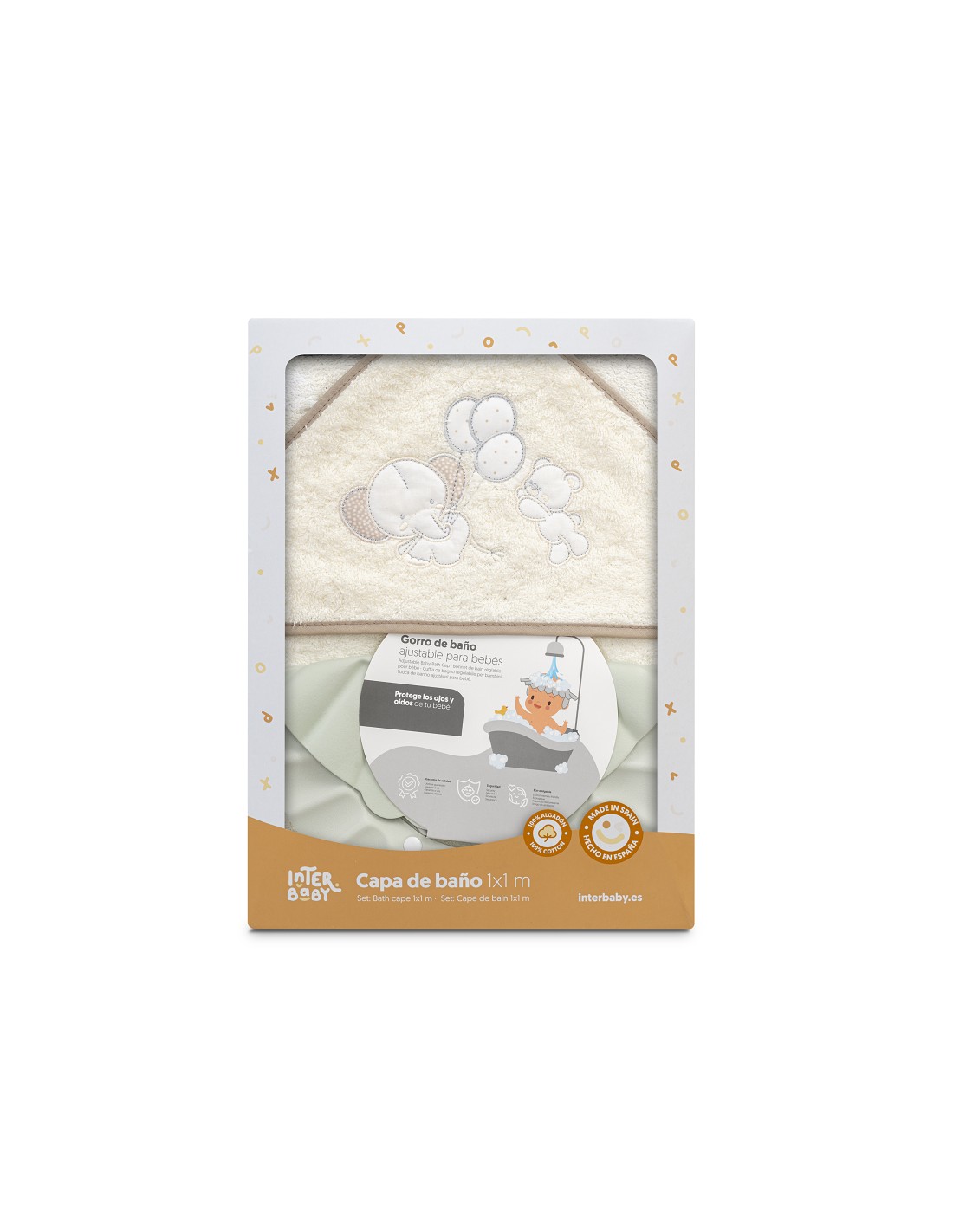 Capa Baño 1X1 Mod Oso Elefante Globos+Gorro Beig