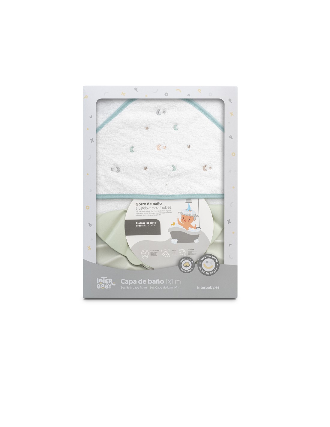Capa Baño 1X1 Mod Estrella Luna Multicolor+Gorro Bco/Verde