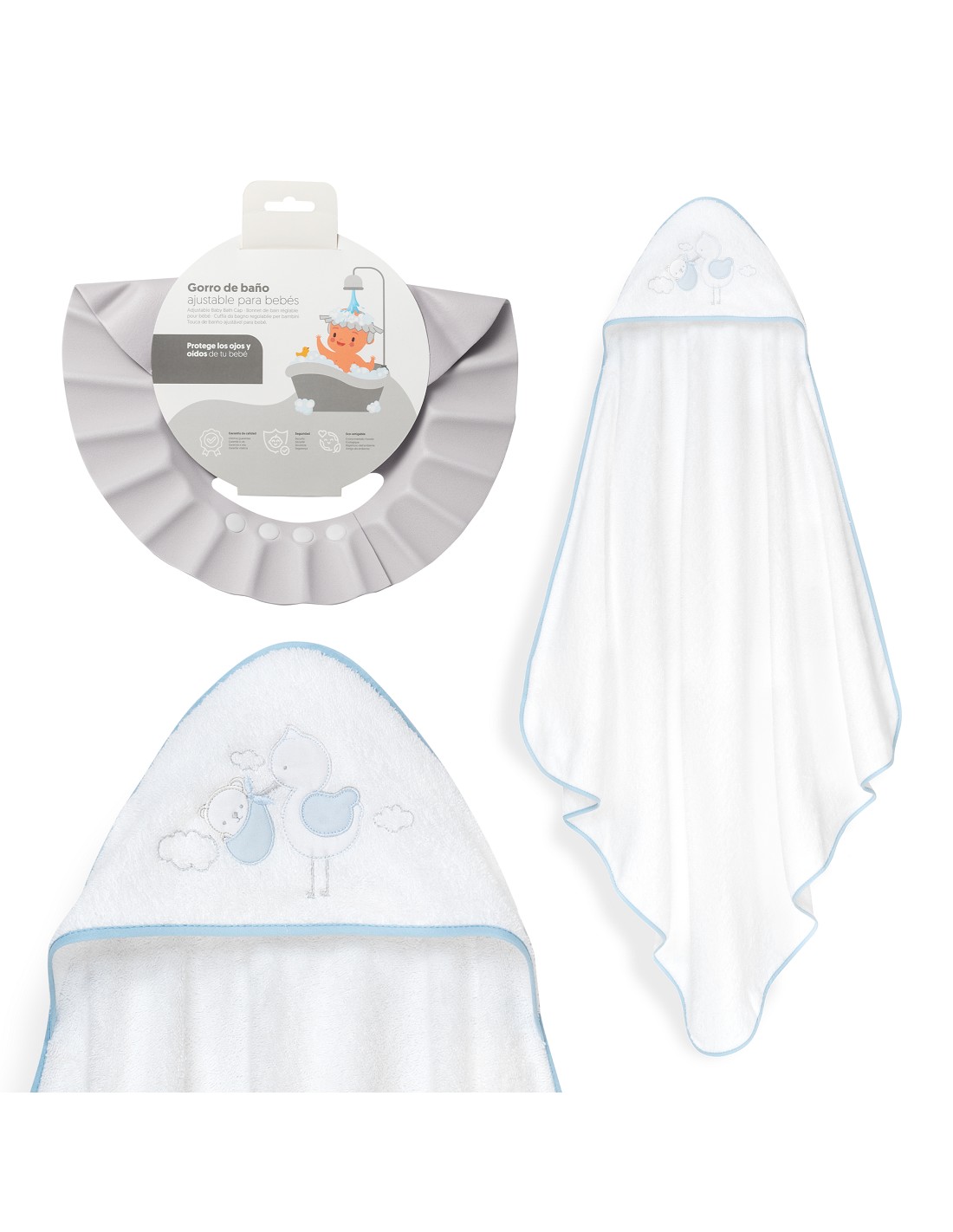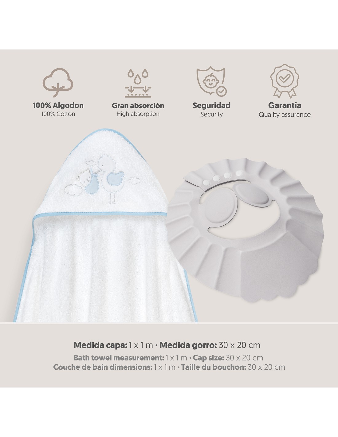 Capa Baño 1X1 Mod Cigueña Oso+Gorro Bco/Azul